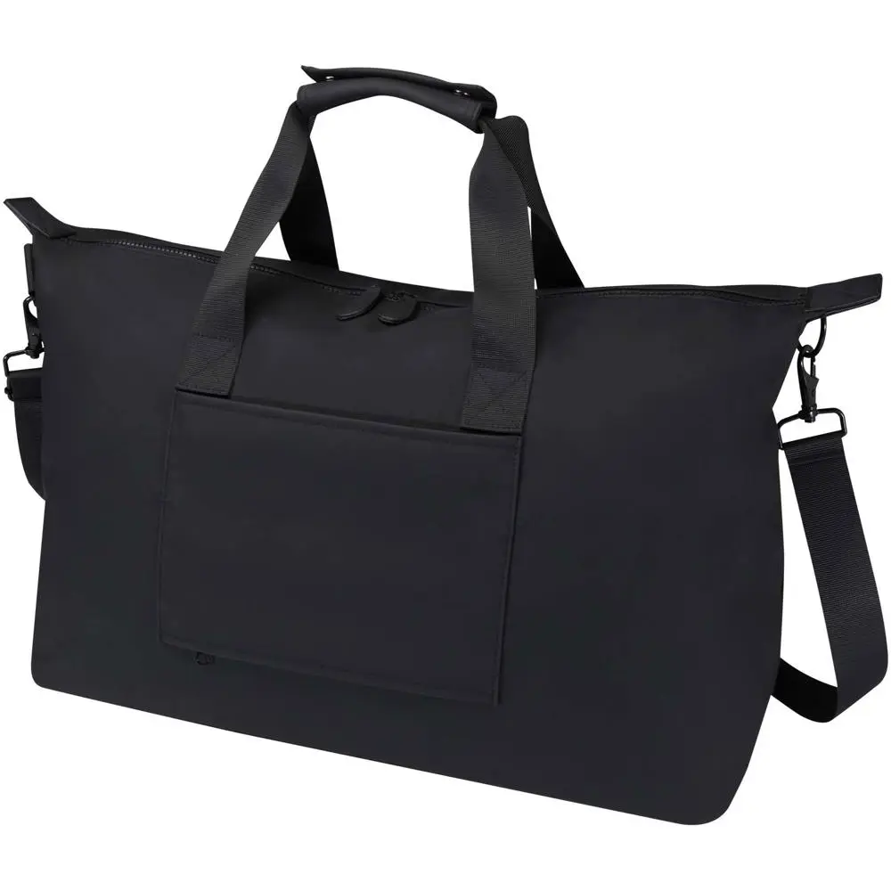 Gemaakt van 51% GRS-gecertificeerd gerecycled plastic en met een voering van 100% GRS-gecertificeerd RPET, draagt deze tas bij aan uw duurzame imago. Het materiaal is robuust en milieuvriendelijk, wat perfect past bij ondernemingen die waarde hechten aan ecologie. De afmetingen van 52 x 27 x 29 cm maken haar compact doch ruim, geschikt voor zowel zakenreizen als informele uitdelingen.