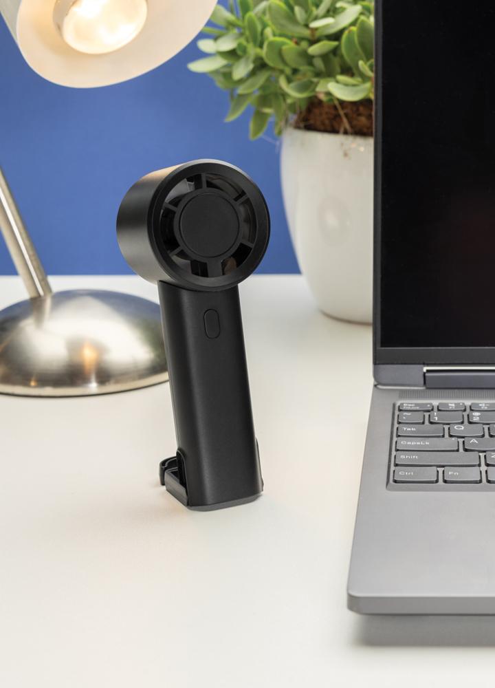 De Twist draagbare ventilator, gemaakt van RCS-gecertificeerd gerecycled plastic, is een compacte en veelzijdige oplossing om overal koel te blijven.De slanke zwarte behuizing, gemaakt van 35% RCS-gecertificeerd gerecycled ABS, bevat een oplaadbare 1200 mAh Li-ionbatterij die tot 6 uur werktijd biedt na slechts 3 uur opladen via de meegeleverde 30 cm zwarte TPE USB-A naar USB-C-kabel.Met drie instelbare snelheidsniveaus en een uitschuifhaak die ook als standaard dient, is de Twist ventilator perfect voor gebruik op een bureau, nachtkastje of tijdens het reizen.De behuizing is gemaakt van RCS-gecertificeerd gerecycled ABS-plastic.RCS (Recycled Claim Standard) is een standaard om het gerecyclede gehalte van een product te verifiëren door de hele toeleveringsketen heen.Totaal gerecycled materiaal: 35% op basis van het totale productgewicht.Deze ventilator is PVC-vrij en verpakt in een FSC®-gecertificeerde kraftdoos.Max. vermogen: 2W | Input: 5V/1A.