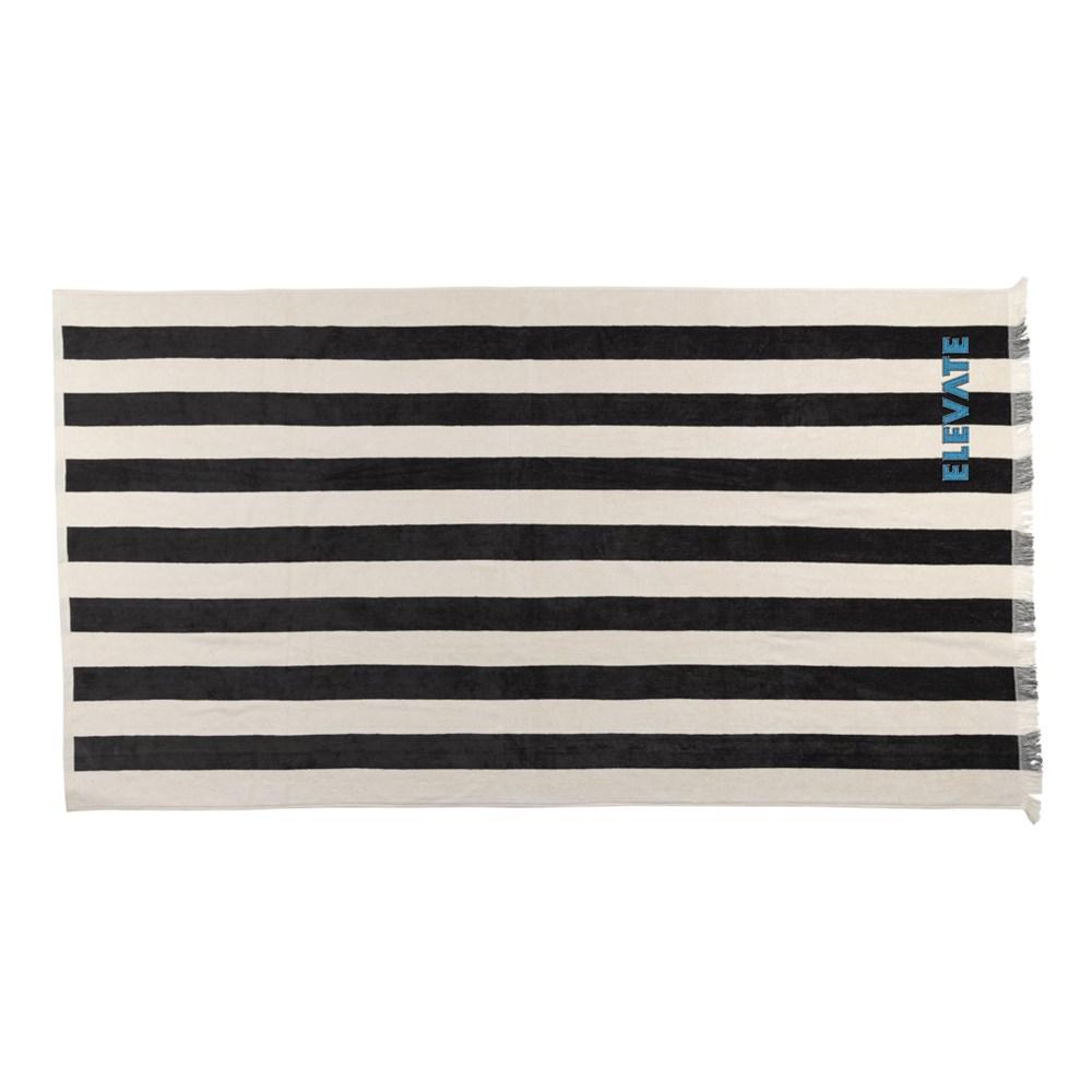 Ontdek dit ultieme luxe strandlaken, perfect als gepersonaliseerd relatiegeschenk met je logo. Je klanten genieten van de zachte, superabsorberende textuur voor maximaal comfort op het strand of bij events. Gemaakt van 50% gerecycled katoen met AWARE™-tracer die het gebruik echt valideert, toon je je engagement voor duurzaamheid.