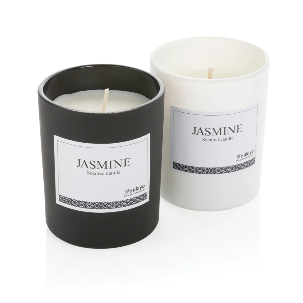 Ontdek de Ukiyo geurkaars in glas, ideaal als gepersonaliseerd relatiegeschenk voor uw bedrijfsevenementen of marketingacties. Met zijn elegante glazen pot en subtiele, langdurige geur creëert deze kaars een warme, gezellige sfeer die uw merk versterkt bij het uitdelen aan klanten. Personaliseer met uw logo voor een professionele touch, en profiteer van de compacte diameter van 69 mm voor eenvoudige verdeling. Voldoet aan strenge veiligheidsnormen zoals REACH en EN15493, voor betrouwbare kwaliteit. Kies voor deze geurkaars om uw relatie met partners te verdiepen en uw merkmemorabel te maken.