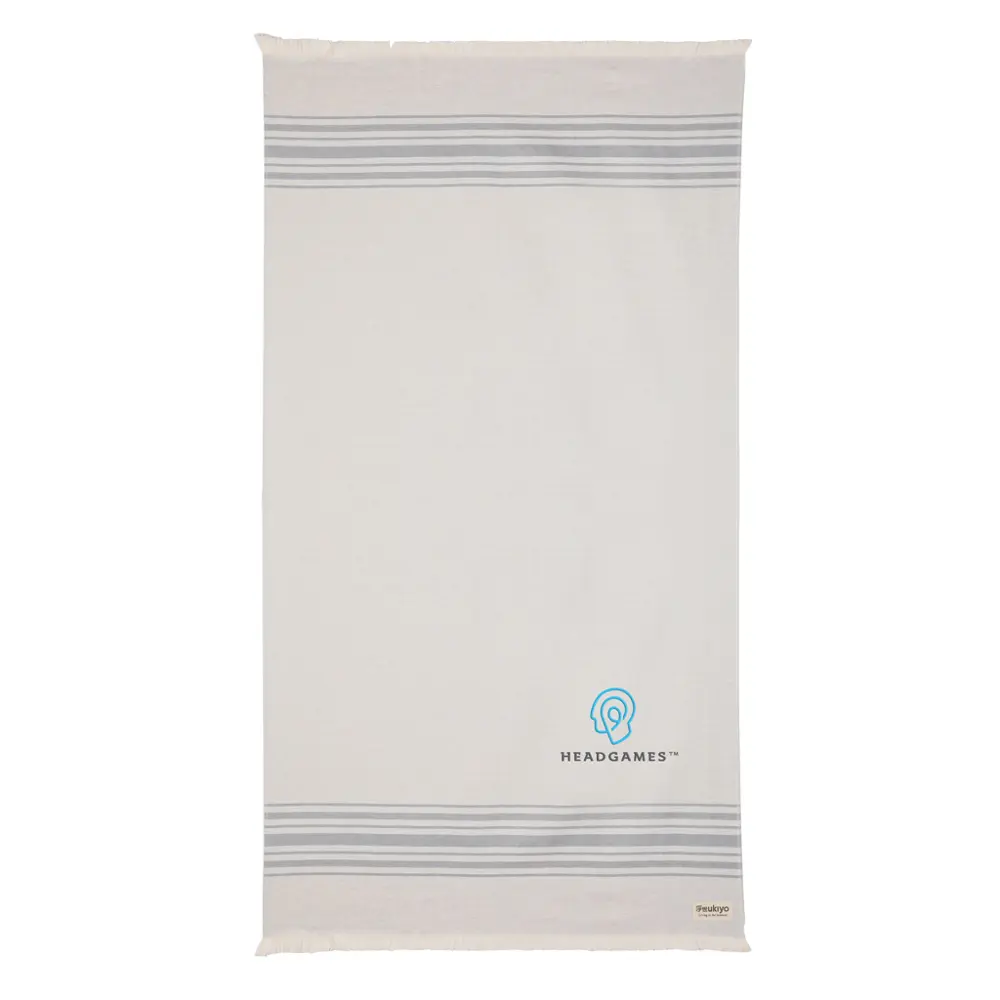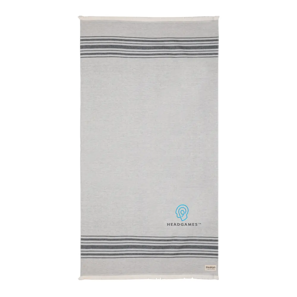 Ontdek de veelzijdige Ukiyo Yumiko hamam handdoek van 100x180 cm, perfect als gepersonaliseerd relatiegeschenk voor uw bedrijf. Met logobedrukking wordt dit product een effectief promotiemiddel dat uw merk zichtbaar maakt bij klanten en relaties tijdens events, op het strand of in de gym.