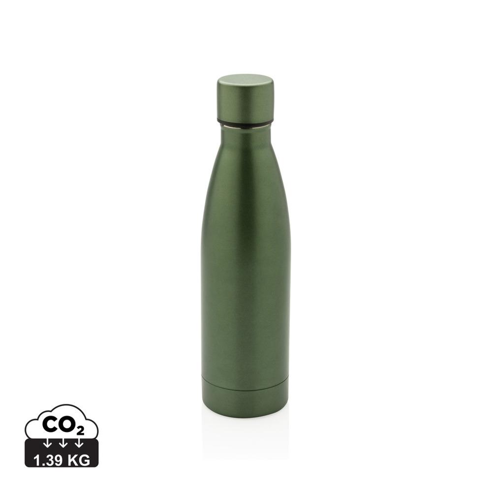 Deze RCS Recycled roestvrijstalen vacuümfles is ontworpen om lang van je drankjes te genieten! De dubbelwandige vacuümconstructie van gerecycled roestvrij staal houdt dranken 15 uur gekoeld of 5 uur warm. Deze fles past in de meeste standaard auto bekerhouders, zodat je hem overal mee naartoe kunt nemen. Gemaakt met RCS (Recycled Claim Standard) gecertificeerde gerecyclede materialen. RCS-certificering zorgt voor een volledig gecertificeerde toeleveringsketen van de gerecyclede materialen. Totaal gerecycled materiaal: 93% op basis van het totale gewicht van het item. BPA-vrij. Capaciteit 500ml. Inclusief FSC®-gecertificeerde kraftverpakking.