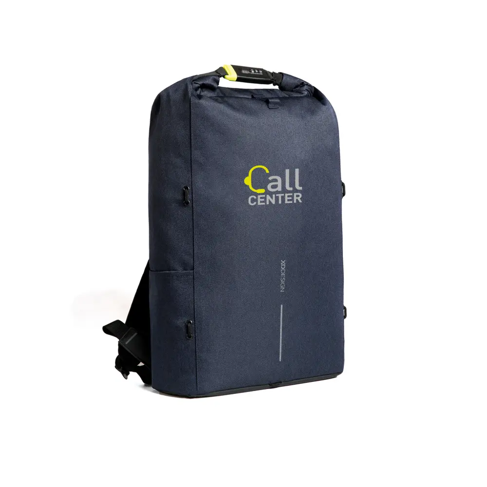 Ontdek de ideale reisgenoot voor uw marketingteam of eventdeelnemers. Deze rugzak biedt superieure bescherming tegen diefstal, zodat uw relaties met een gerust hart kunnen reizen. Door het op te rollen en te vergrendelen met het versterkte combinatieslot, sluit u het hoofdvak volledig af. Bevestig de tas eenvoudig aan een vast object voor extra zekerheid. Verborgen zakken aan de achterzijde en in de schouderriemen, inclusief RFID-bescherming, houden uw waardevolle items discreet en veilig. Gemaakt van waterafstotend polyester met PU-coating, blijft de inhoud droog tijdens onverwachte buien.