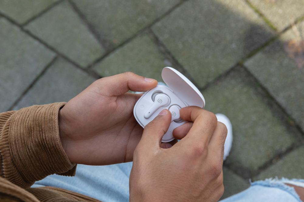 Je geniet tot 5 uur luistertijd per oplaadbeurt, en de handige oplaadcassette in zakformaat verlengt dat tot 18 uur totaal. Met IPX4-bescherming zijn ze zweet- en weerbestendig, dus neem ze gerust mee naar buiten of sportevents. Bluetooth zorgt voor naadloze connectie, en ze zijn PVC-vrij met plasticverminderd pakking – duurzaam en aantrekkelijk voor jouw marketingcampagnes.