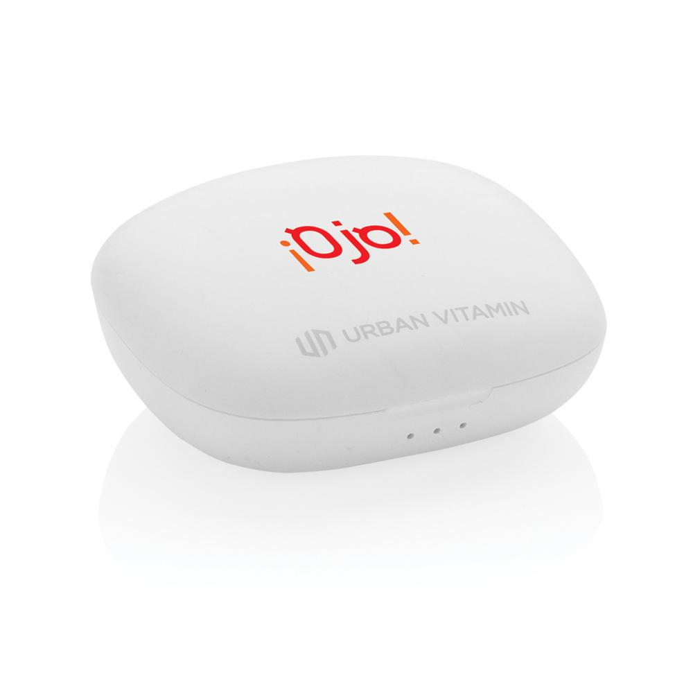 Ontdek de Urban Vitamin Byron ENC-oordoppen, perfect als gepersonaliseerd relatiegeschenk met jouw logo. Je gaat volledig draadloos met deze compacte, krachtige Bluetooth-oordopjes die je merk promoten bij elke drager. De gamemodus met lage latentie van 65 ms minimaliseert geluidsvertraging, ideaal voor gaming op events. ENC-omgevingsruisonderdrukking zorgt voor kristalheldere gesprekken, zonder herhaling van woorden. Tik gewoon op het oordopje dankzij touch control om te antwoorden. Geniet van 5 uur luistertijd per lading en tot 18 uur totaal met de handige oplaadcassette. IPX4-bescherming maakt ze zweet- en weerbestendig, perfect voor actieve uitdelingen. PVC-vrij en met plastic gereduceerde verpakking, ideaal voor duurzame marketingacties. Personaliseer ze nu en versterk je merk bij klanten!
