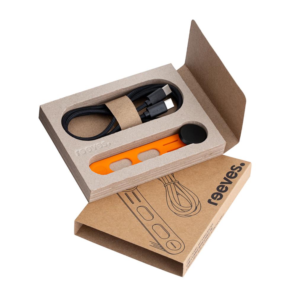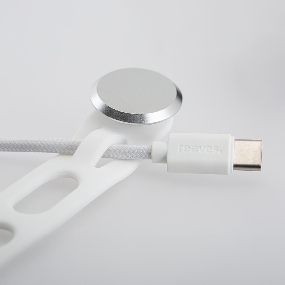 Ontdek de reeves-convertics tie, een exclusief ontwerp van reflects®. Deze slimme siliconen kabelbinder bundelt je usb-c naar usb-c-kabel handig samen, zodat je hem altijd mee kunt nemen. Tijdens het opladen klik je de 1 meter lange kabel vast in de gleuven – zo raakt je houder nooit kwijt.