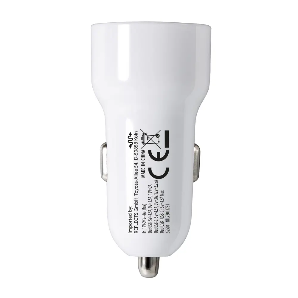Ontdek de USB-C & USB-autolader REEVES-VALLEJO, uw ideale partner voor gepersonaliseerde relatiegeschenken. Deze superlichte lader, vervaardigd uit kunststof, laadt smartphones of tablets razendsnel op tijdens het rijden via de dubbele poort (USB 3.0 en USB-C met Power Delivery). Sluit hem eenvoudig aan op de sigarettenaansteker en profiteer van een uitgangsvermogen van 24 Watt voor efficiënt opladen onderweg.