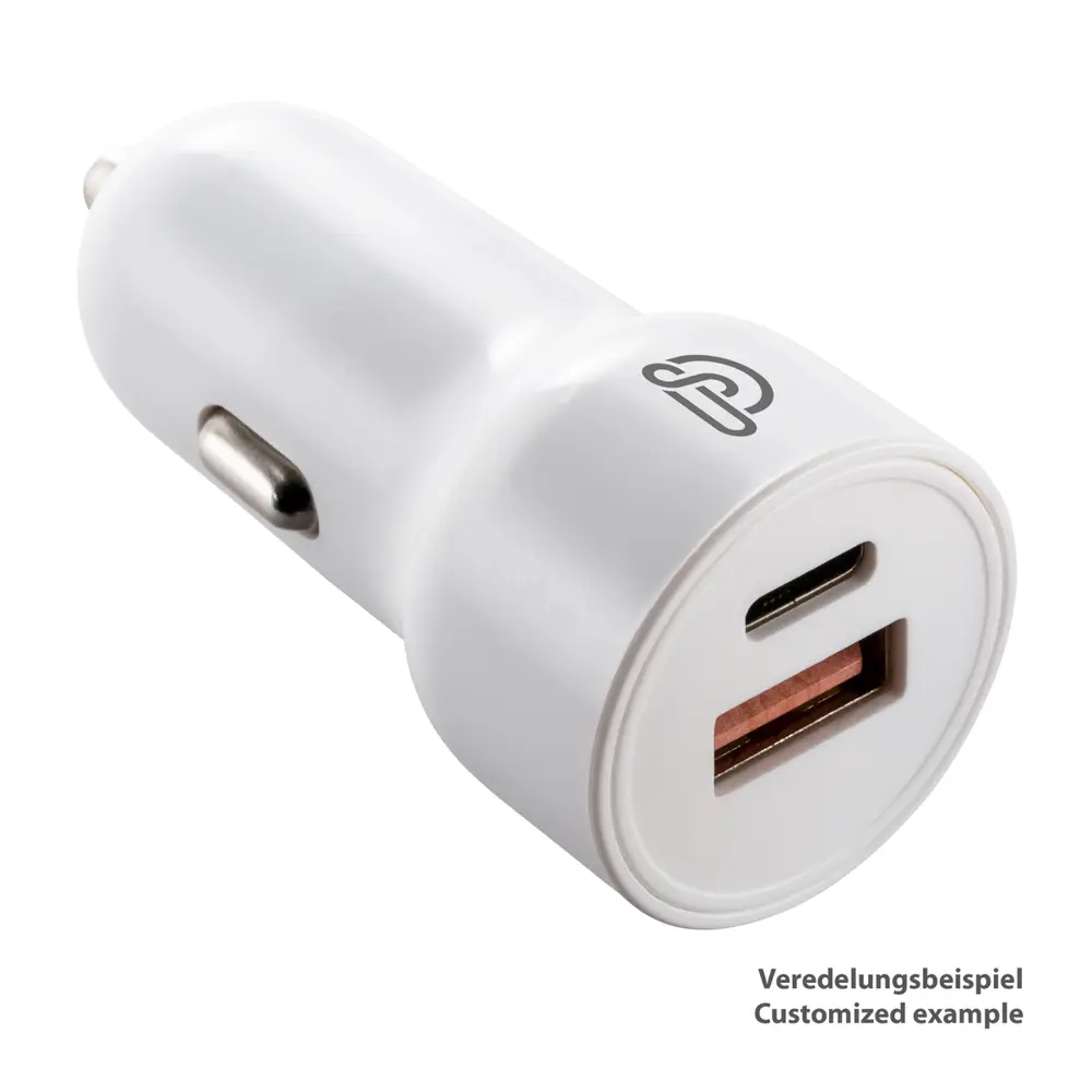 Ontdek deze superlichte autolader, ideaal voor uw marketingacties en events. U laadt eenvoudig uw smartphone of tablet op tijdens het rijden, door het toestel aan te sluiten via USB of USB-C. De lader plaatst u in de sigarettenaansteker van uw voertuig. Dankzij de dubbele poorten biedt deze autolader flexibiliteit en snelheid, perfect om uw merk te promoten als praktisch relatiegeschenk.