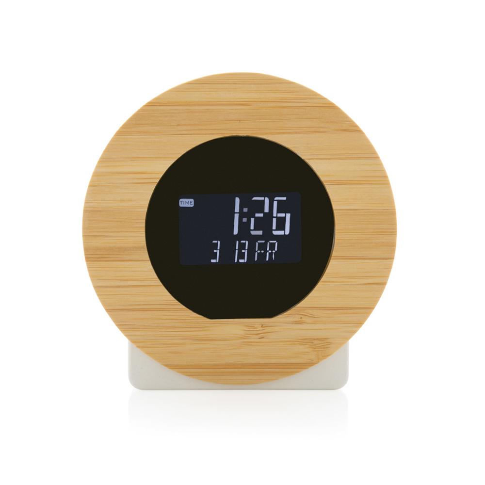 Je bereikt met deze praktische bureauklok een breed publiek: het LCD-scherm toont tijd en wekker, en de inclusieve 100 cm type C-kabel van RCS-gecertificeerd gerecycled TPE maakt opladen eenvoudig. PVC-vrij en verpakt in een FSC® mix kraft doos, dus volledig milieubewust.