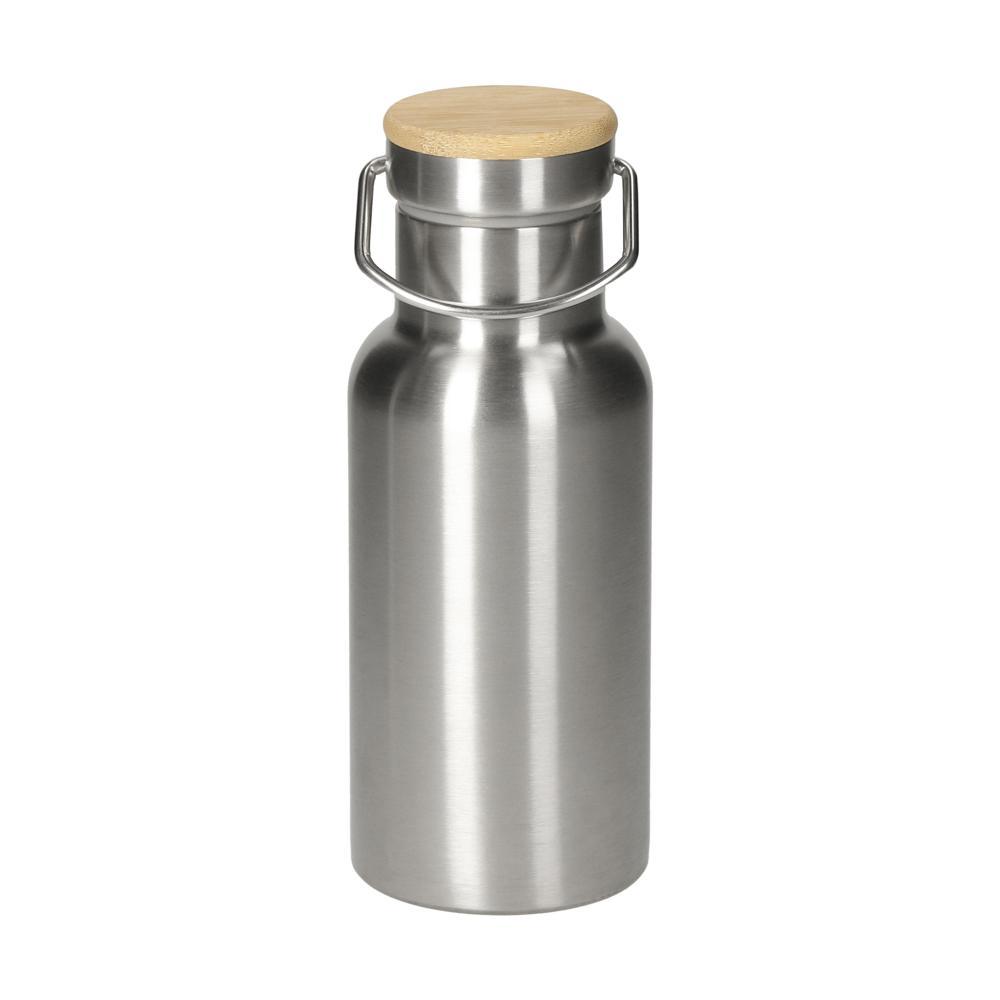 Ontdek deze lichte, dubbelwandige vacuümfles van roestvrij staal, perfect als gepersonaliseerd relatiegeschenk met jouw logo. Met een inhoud van 0,35 liter en diameter van 70 mm past hij moeiteloos in je tas of rugzak. De schroefdop met siliconen afdichting zorgt voor lekvrij gebruik, terwijl de draaggreep het transport vergemakkelijkt. Het deksel met ongelakt bamboehout geeft een stijlvol, natuurlijk accent.