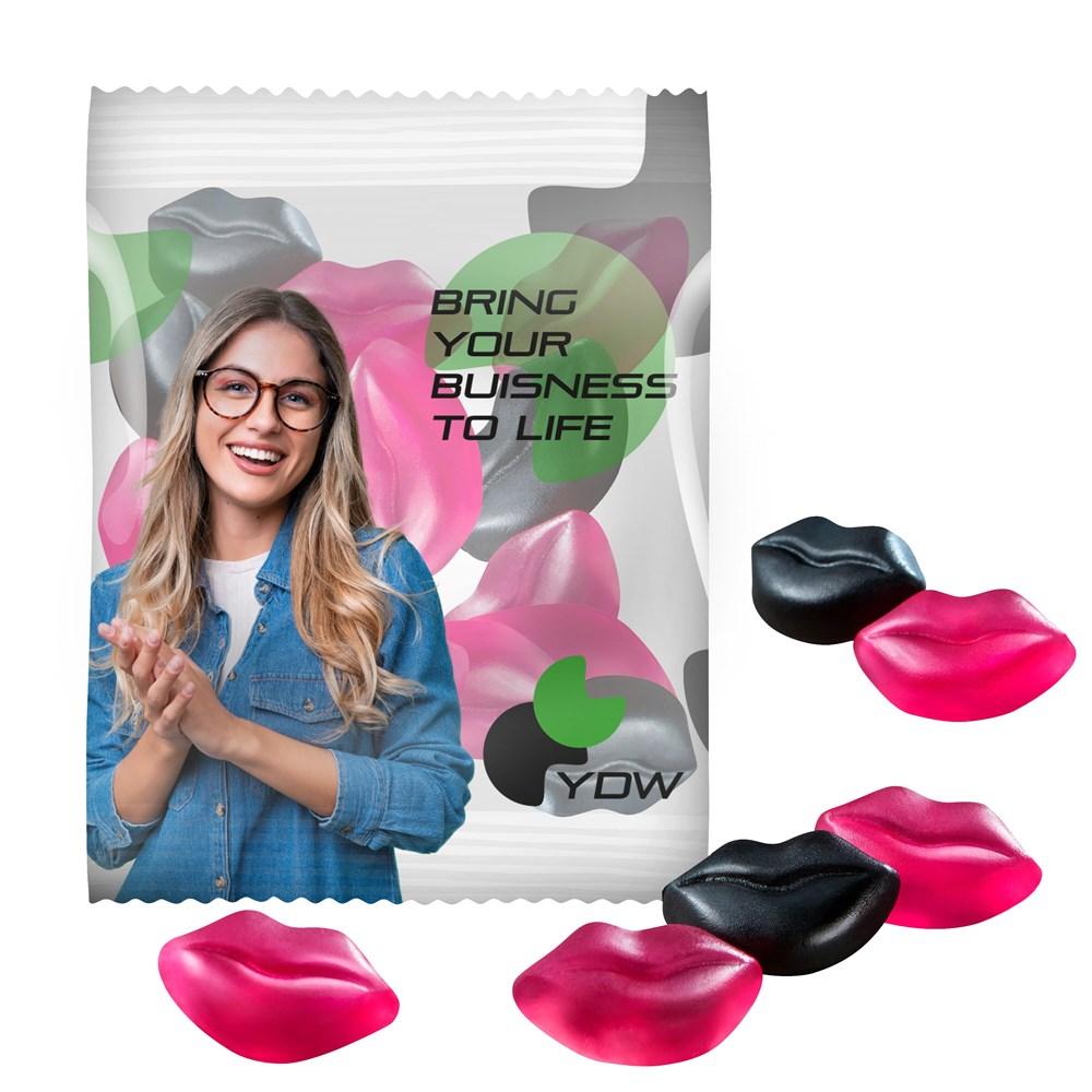 All-over full-colour bedrukt zakje, gevuld met ca. 15gr vegan Schwarzwälder-Kers vruchtengummies