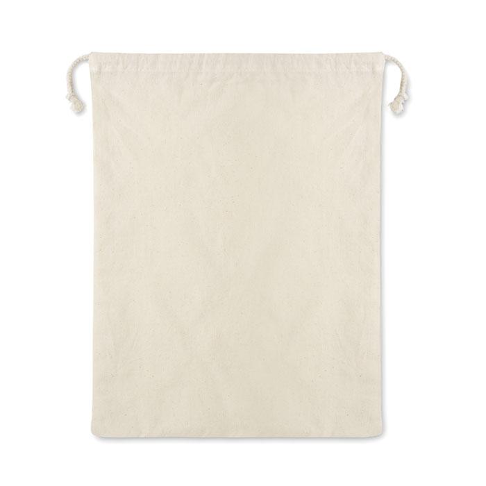 Herbruikbare voedseltas met trekkoordsluiting. Voorzijde is 140 g/m² katoen, achterzijde is van 110 g/m² mesh katoen.