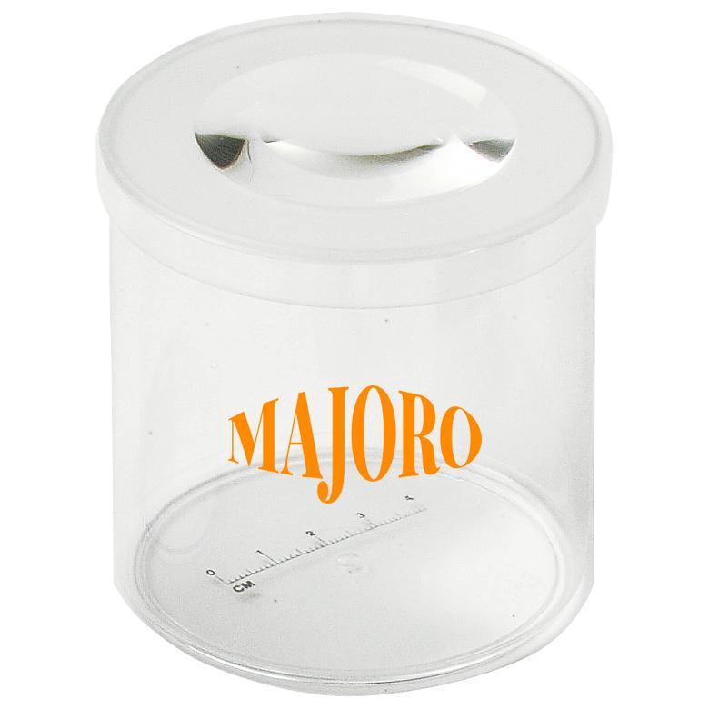 Je gebruikt dit handige vergrootglas door het eenvoudig op de afbeelding te plaatsen die je wilt vergroten. Aan de onderkant vind je een meetschaal van 4 cm, perfect voor nauwkeurige metingen. Met een diameter van 79 mm past het makkelijk in je hand en is het ideaal als relatiegeschenk.