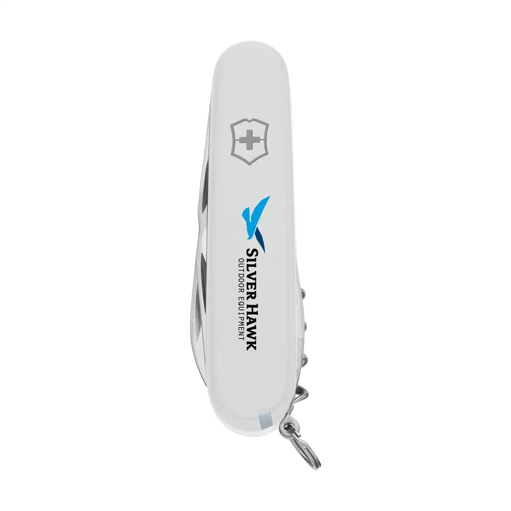 Als marketingprofessional of eventorganisator personaliseert u dit zakmes eenvoudig met uw logo, wat zorgt voor langdurige zichtbaarheid bij uw relaties. Victorinox staat voor topkwaliteit en betrouwbaarheid, perfect om uw bedrijf te profileren tijdens events of als relatiegeschenk. Let op lokale regels voor het dragen van multitools. Verpakt per stuk, klaar voor distributie.