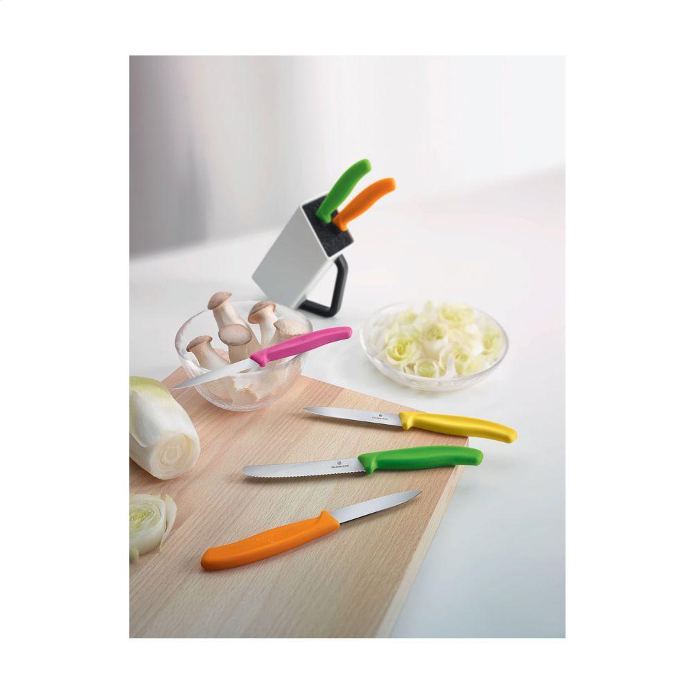 Ontdek dit topkwaliteit tafelmes van Victorinox Swiss Classic, perfect als relatiegeschenk met jouw logo. Het hoogwaardige RVS lemmet van 11 cm is gekarteld met een ronde punt, ideaal voor maaltijden of keukenklusjes. Het kunststof heft heeft een ergonomische vorm, zodat het fijn in je hand ligt en je moeiteloos werkt.