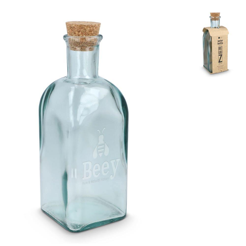 Vierkante Gerecycled glas fles ReuuZ met kurkstop 500ml