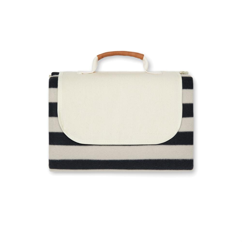 Picknickdeken van zacht fleece met katoencanvas en details van imitatieleer. Het fleecemateriaal is gemaakt van GRS-gecertificeerd rPET. De GRS-certificering garandeert een volledig gecertificeerde toeleveringsketen van de gerecyclede materialen. De achterkant is gemaakt van PEVA, dat waterafstotend is. Door de slimme constructie is de deken gemakkelijk op te vouwen en mee te nemen. Totaal gerecycled materiaal: 51% op basis van het totale gewicht van het item.