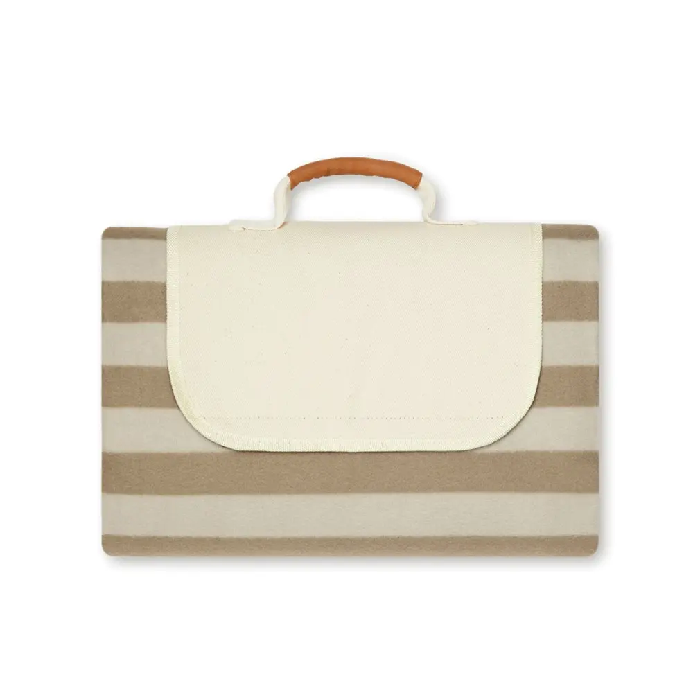 De deken combineert zacht fleece van GRS-gecertificeerd rPET met katoencanvas en details in imitatieleer. De achterzijde uit PEVA zorgt voor waterafstotendheid, zodat u droog blijft tijdens een picknick. Dankzij de slimme vouwconstructie is de deken compact en gemakkelijk mee te nemen. Totaal gerecycled materiaal: 54% op basis van het totale gewicht.