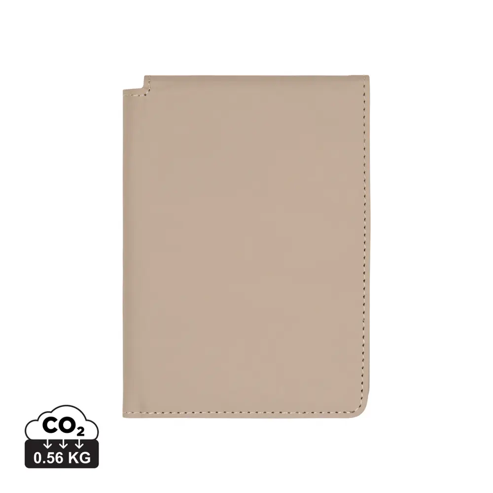 Gemaakt van gerecycled PU-materiaal, voldoet deze paspoorthouder aan strenge milieunormen. Met 13% RCS-gecertificeerd gerecycled polyester draagt u bij aan een duurzamere wereld. De productie voldoet aan richtlijnen zoals REACH, AZO-kleurstoffen, cadmium, lood, PAHS en phthalaten, en is vrij van PVC en gechloreerde paraffines. Kies voor dit product en toon uw engagement voor ecologie in uw relatiegeschenken.