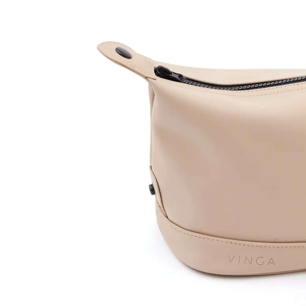 De VINGA Baltimore toilettas is een ideaal relatiegeschenk voor uw marketingacties of events. Met zijn minimalistische en moderne ontwerp biedt deze praktische tas een stijlvolle manier om uw merk te promoten. Gemaakt van waterafstotend PU en polyester, beschermt hij de inhoud betrouwbaar tegen vocht, terwijl de stevige rits voor eenvoudig openen en sluiten zorgt. De tas heeft een inhoud van 4,5 liter, perfect voor toiletartikelen tijdens reizen of dagelijks gebruik.