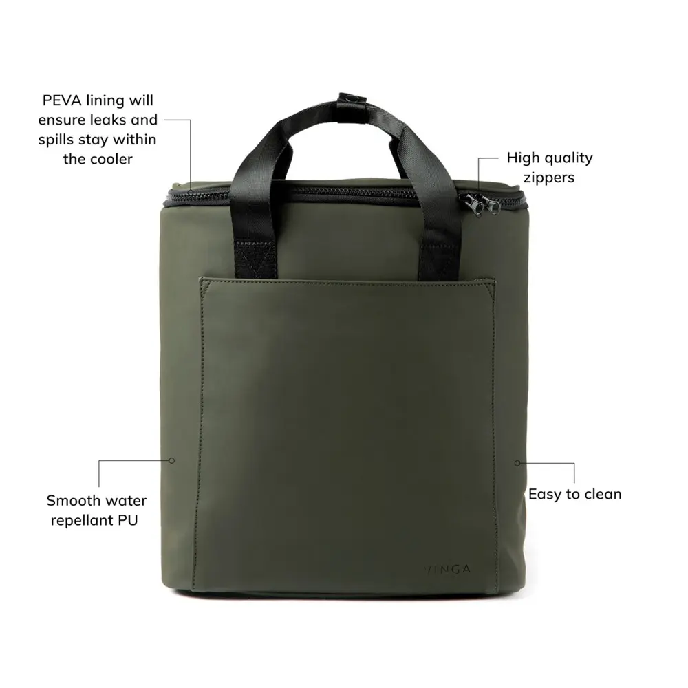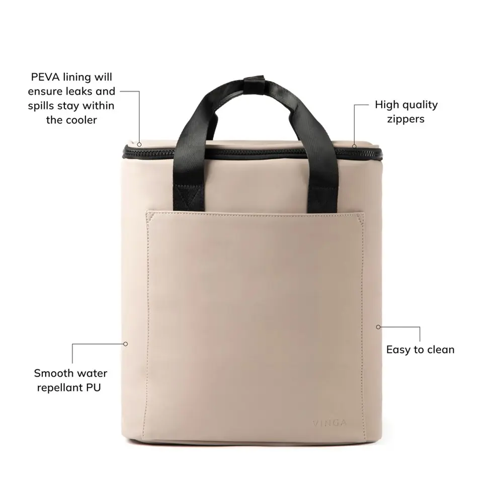 Deze minimalistische koelrugzak is vervaardigd uit waterafstotend nubuck-PU en polyester. De isolatie bestaat uit extra dik schuim, terwijl de voering uit PEVA bestaat dat eenvoudig schoon te maken en fris te houden is. Met een inhoud van 20 liter biedt deze rugzak ruime opslag. Hij voldoet aan diverse richtlijnen inzake veiligheid, zoals AZO-kleurstoffen, cadmium, voedselveiligheid, lood, REACH, PAHS, ftalaten en is vrij van PVC en gechloreerde paraffinen. De verpakking bestaat uit een polybag in bulk.