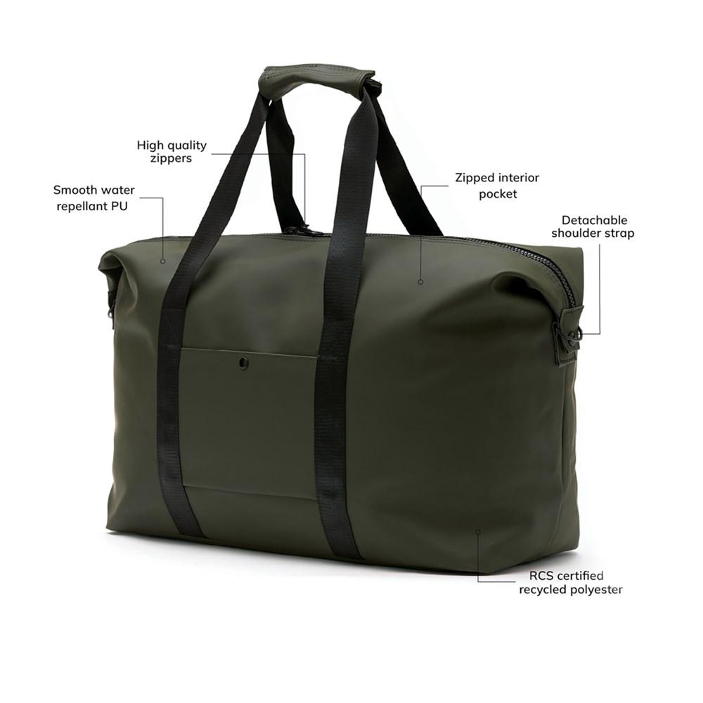 Je zult niet onopgemerkt blijven met deze ruime weekendtas over je schouder, want hij is zowel stijlvol als minimalistisch. De tas heeft een verstelbare riem zodat je comfortabel kunt reizen, of het nu gaat om een zakenreis of een vakantie. De weekendtas heeft een praktisch ritsvak aan de ene kant en een klein vakje met drukknoop aan de andere kant. Gemaakt van PU-materiaal waardoor de tas waterafstotende eigenschappen heeft.