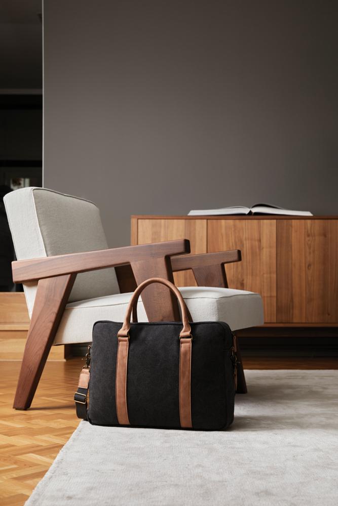 Deze veelzijdige tas biedt ruimte voor alles wat u nodig hebt en heeft een elegant, subtiel ontwerp. De gevoerde computertas is geschikt voor laptops tot 17" en is perfect voor zakenreizen. Hij is gemaakt van 45% gecontroleerde gerecyclede materialen, en met de verstelbare en afneembare schouderriem kunt u hem over uw schouder of op uw arm dragen. Reis en zie er professioneel uit, ongeacht de gelegenheid! Gemaakt van RCS (Recycled Claim Standard) gecertificeerd gerecycled materiaal, waarbij de RCS-certificering een volledig gecertificeerde toeleveringsketen van gerecyclede materialen garandeert. Totale gerecyclede inhoud gebaseerd op het totale productgewicht.Geschikt voor laptops met een grootte van in totaal 17 inch. Denk eraan dat de afmetingen van het scherm niet hetzelfde zijn als die van de gehele laptop.