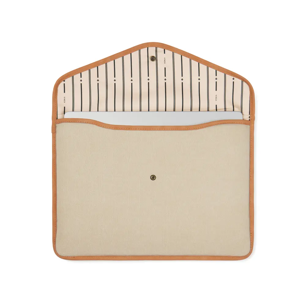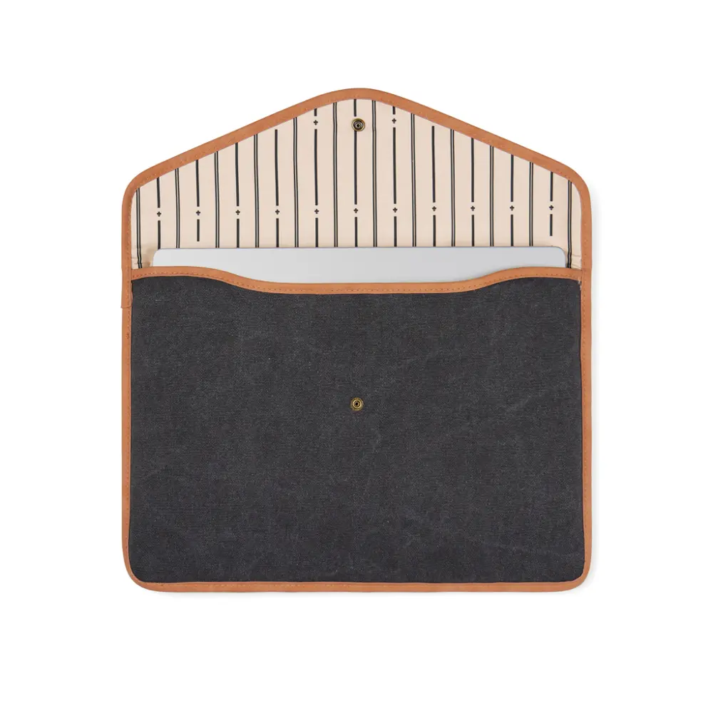Bescherm uw waardevolle laptop met deze klassieke en stijlvolle hoes uit gerecycled canvas. De hoes sluit veilig met een drukknoop en is voorzien van een voering voor optimale bescherming tijdens transport en gebruik. Gemaakt van hoogwaardig gerecycled canvas met details in PU-leer, past deze hoes perfect bij laptops en tablets tot 16 inch. Let op: controleer de exacte afmetingen van uw apparaat, aangezien de weergaveafmetingen licht kunnen variëren.