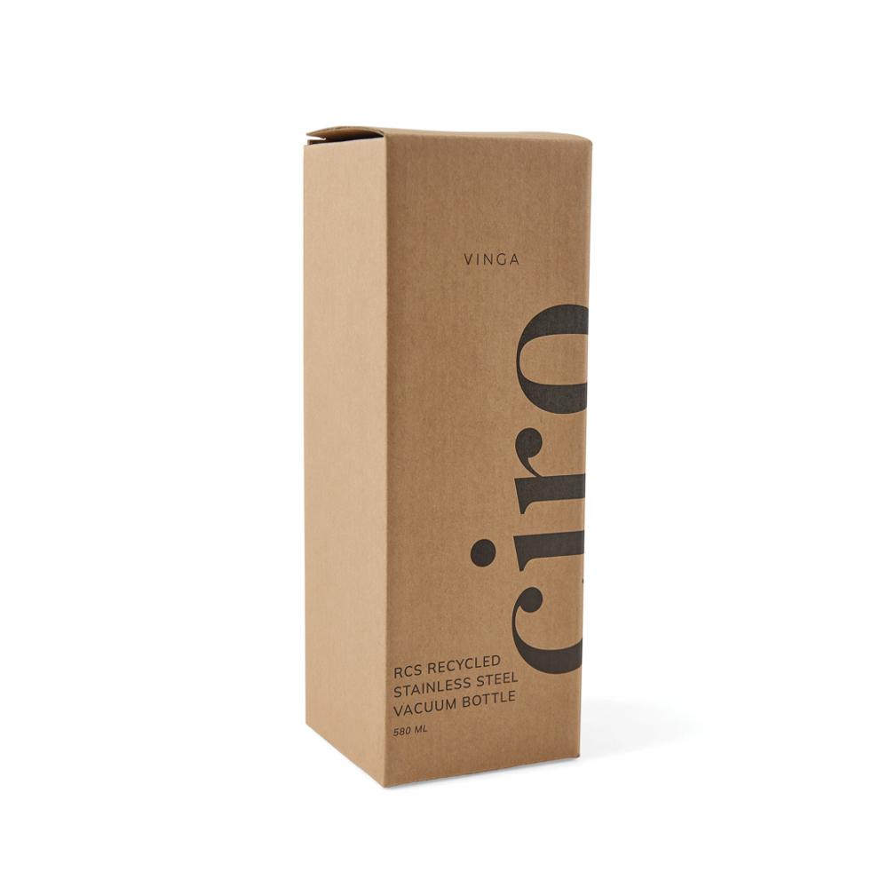 De Ciro RCS gerecycled RVS vacuümfles is een elegante en functioneel ontworpen thermosfles. De fles heeft een deksel van acaciahout met een metalen lus, waardoor de fles gemakkelijk mee te nemen is als je onderweg bent. Acaciahout is een organisch materiaal waarbij variaties in tint en kleur natuurlijke kenmerken zijn. De vacuümconstructie met dubbele wanden van gerecycled roestvrij staal zorgt ervoor dat de fles de temperatuur lang intact houdt, zowel voor warme als koude dranken. Gecertificeerd door RCS (Recycled Claim Standard), de RSC certificering garandeert dat de hele toeleveringsketen van de gerecyclede materialen gecertificeerd is. Het totale gerecyclede gehalte is gebaseerd op het totale productgewicht. Dit product bevat 76% RSC-gecertificeerd gerecycled roestvrij staal. De fles is gemakkelijk schoon te maken en mag alleen met de hand worden schoongemaakt. Inclusief FSC®-gecertificeerde kraftverpakking.
