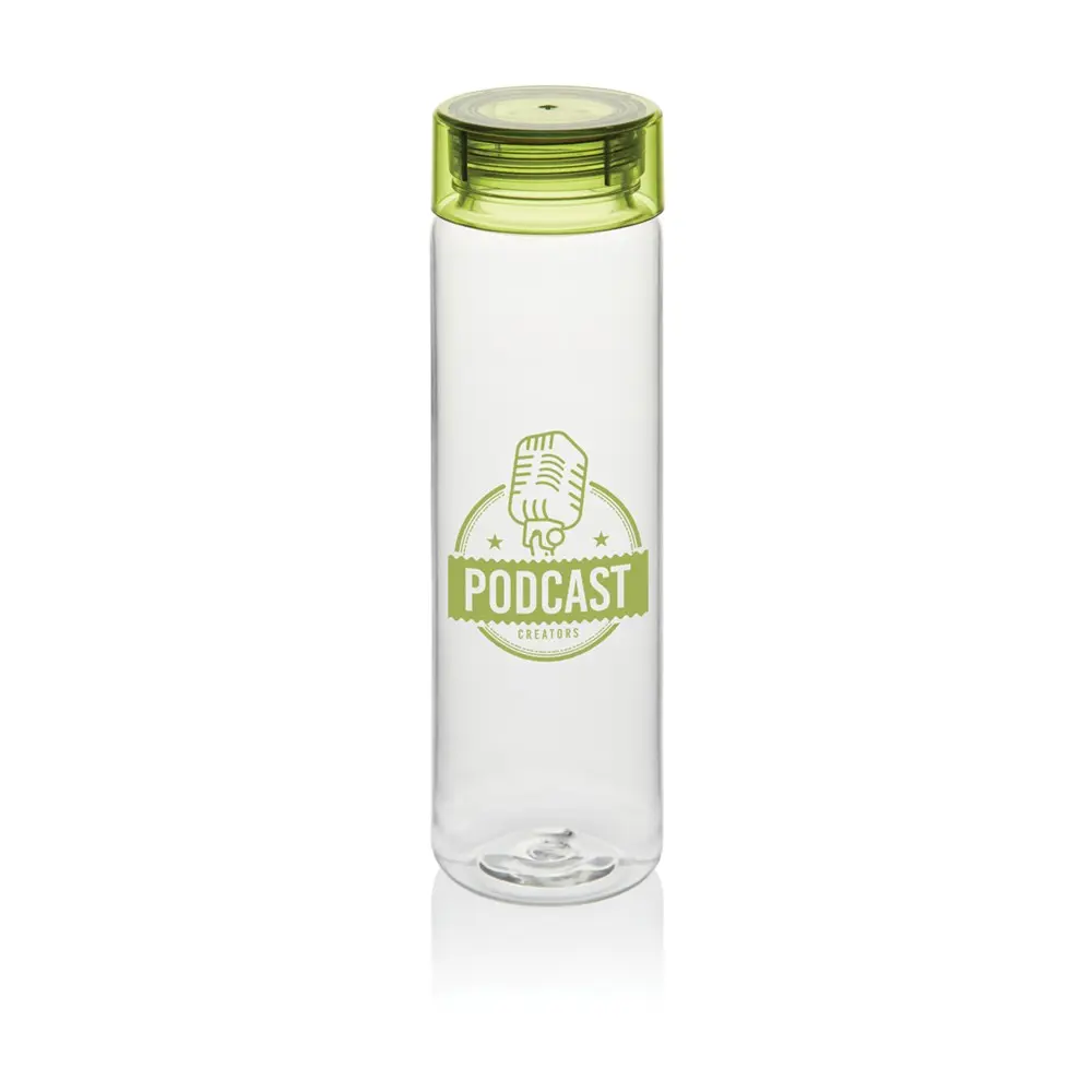 Personaliseer deze waterfles met uw logo om uw merk op een duurzame manier te promoten. Het 98% gerecyclede materiaal toont uw engagement voor het milieu, wat uw imago versterkt bij klanten en partners. Handig voor marketingacties of events, waar uw ontvangers de fles dagelijks gebruiken en zo uw boodschap verspreiden. De compacte diameter van 65 mm maakt hem gemakkelijk mee te nemen, perfect voor actieve professionals.