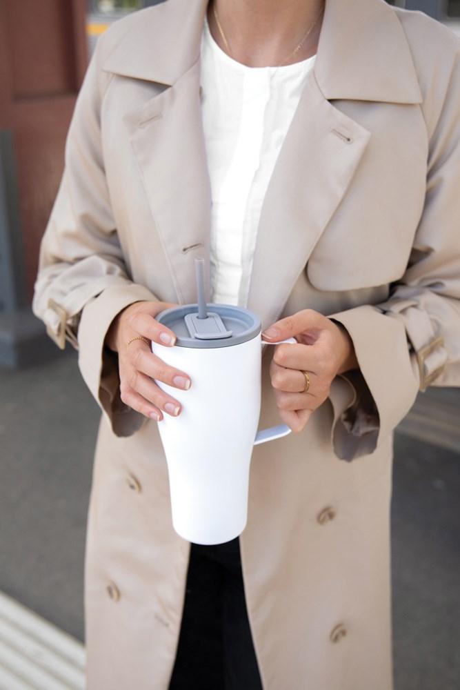 Een slanke en duurzame vacuümfles, gemaakt van gerecycled roestvrij staal. Met zijn stijlvolle ontwerp, handige metalen handgreep en een rietje, is deze fles niet alleen een hydratatiepartner, maar ook een statement voor je dagelijkse avonturen. Of je nu naar je werk pendelt, boodschappen doet of de natuur verkent, de Eos Voyager is jouw perfecte metgezel. De dubbelwandige isolatie houdt je drankje tot 24 uur koud en tot 6 uur warm, zodat je de hele reis verfrist blijft. Lekvrij. Niet vaatwasser- of magnetronbestendig, alleen met de hand afwassen. Inclusief FSC®-gecertificeerde kraftverpakking. Gecertificeerd door RCS (Recycled Claim Standard), waarbij RCS-certificering garandeert dat de gehele toeleveringsketen van gerecyclede materialen gecertificeerd is. Het totale gerecyclede gehalte is gebaseerd op het totale productgewicht. Dit product bevat 79% RCS-gecertificeerd gerecycled roestvrij staal.