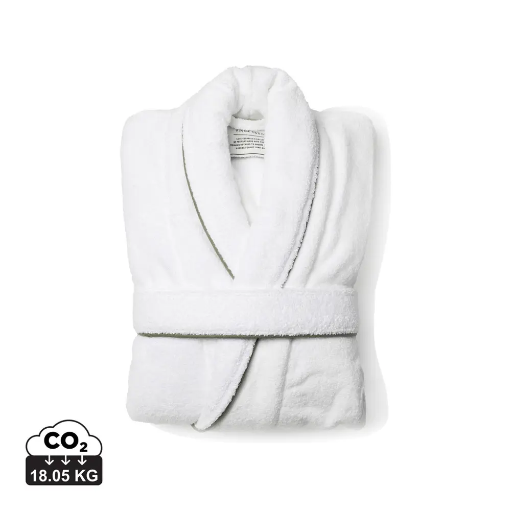 De VINGA Harper badjas L/XL is een luxueus relatiegeschenk van 100% katoen, ideaal voor uw marketingacties of events. Dit klassieke model met brede kraag, ceintuur en verfijnde details zoals ingesloten naden biedt ongeëvenaard comfort dankzij de lange katoenvezels en ongedraaide draden. Met een gewicht van 450 g/m² voelt hij ongelooflijk zacht aan, perfect om uw klanten te verrassen.