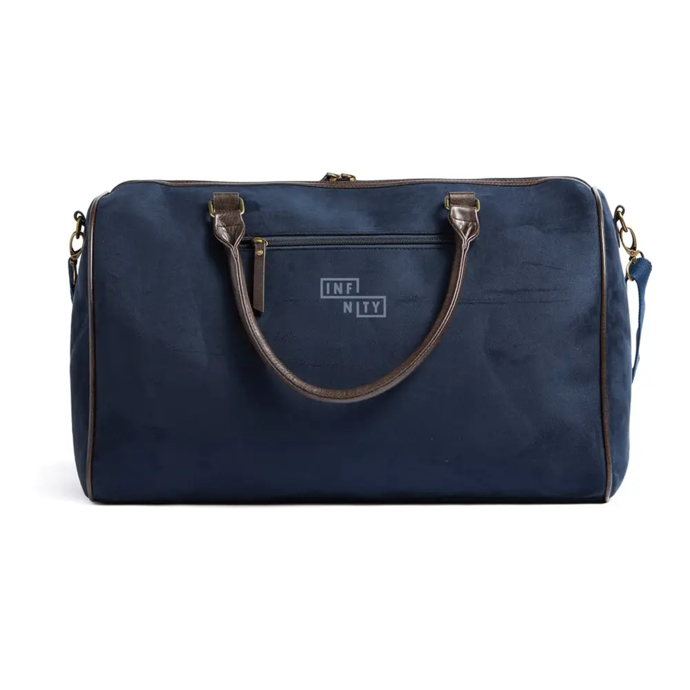 Het tijdloze ontwerp met suède-imitatieleer en messing details straalt elegantie uit, terwijl de verstelbare riem en handvaten meerdere draagopties bieden voor maximaal comfort onderweg. Personaliseer de tas met uw logo om uw merk zichtbaar te maken bij uw klanten – perfect als relatiegeschenk dat loyale relaties versterkt.