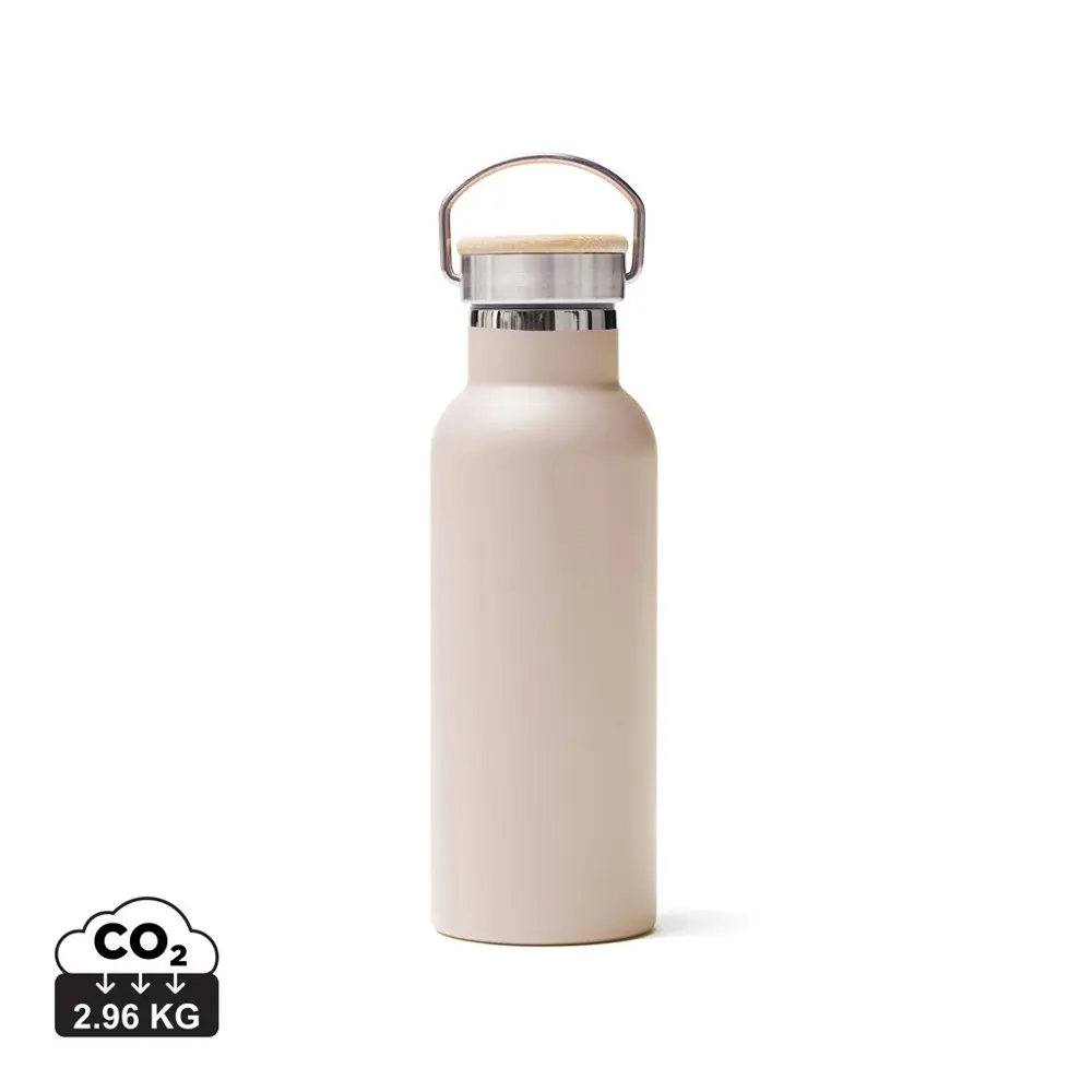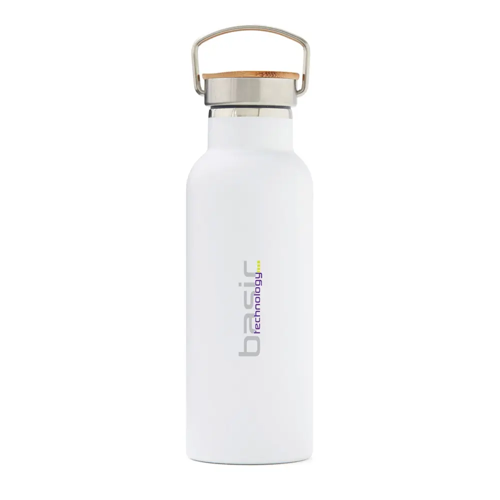 De VINGA Miles thermosfles is het ideale gepersonaliseerde relatiegeschenk voor uw bedrijf. Dankzij geavanceerde vacuümisolatie houdt deze fles dranken ijskoud tot wel 15 uur en stomend heet tot 6 uur, perfect voor events of als duurzame reclame. De condensvrije isolatie voorkomt lekkage in tassen, terwijl het 18/8 roestvrijstalen materiaal smaakneutraal blijft en geen geuren vasthoudt. Gemaakt van BPA-vrije, gifstofvrije materialen, voldoet het aan strenge voedselveiligheidsnormen zoals richtlijn 1935/2004/EC. Met een inhoud van 0,5 liter en bamboe accents is het stevig en levensduurzaam, ideaal voor logobedrukking in grote aantallen. U geeft uw klanten een premium, milieuvriendelijk alternatief voor plastic, dat uw merk langdurig promoot. Eenvoudig met de hand te reinigen.