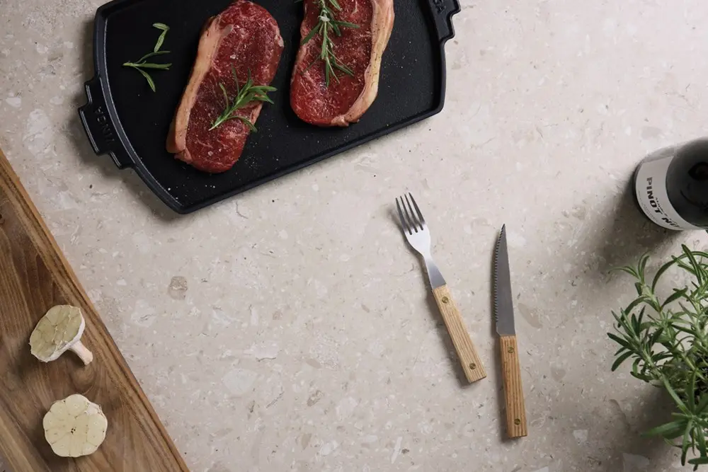 Gemaakt van roestvrij staal van hoge kwaliteit en FSC®-gecertificeerd essenhout, biedt deze set robuustheid en een natuurlijk gevoel. Het essenhout zorgt voor een stevige, hygiënische grip, terwijl het roestvrij staal zorgt voor scherpe snijranden en eenvoudige reiniging. U profiteert van een product dat bestand is tegen intensief gebruik, zonder compromissen op stijl of functionaliteit.