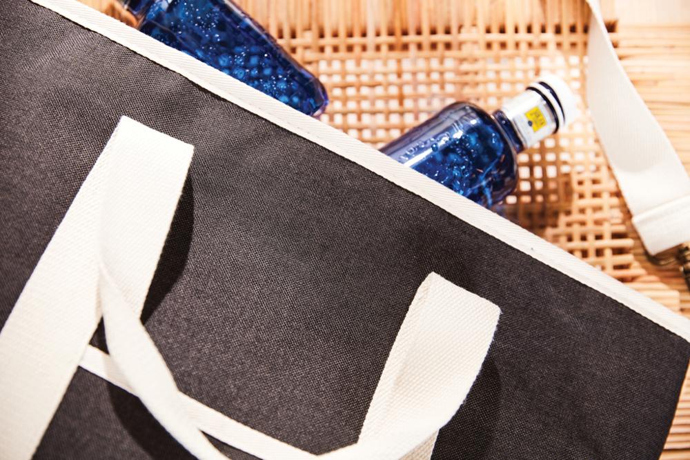 Een koeltas met gemêleerde kleuren en details gemaakt van katoen en imitatieleer, ideaal om boodschappen mee te doen maar ook om in stijl te gaan picknicken. Er is ook een klein compartiment aan de buitenkant van de koeltas, dat ruimte biedt voor nog andere spullen. De dikke EVA-vulling zorgt ervoor dat de kou lang wordt vastgehouden. Het is ook gemakkelijk te reinigen en te drogen na gebruik. Met een verstelbare schouderband en een dubbel handvat heeft u verschillende manieren om de koeltas te dragen.