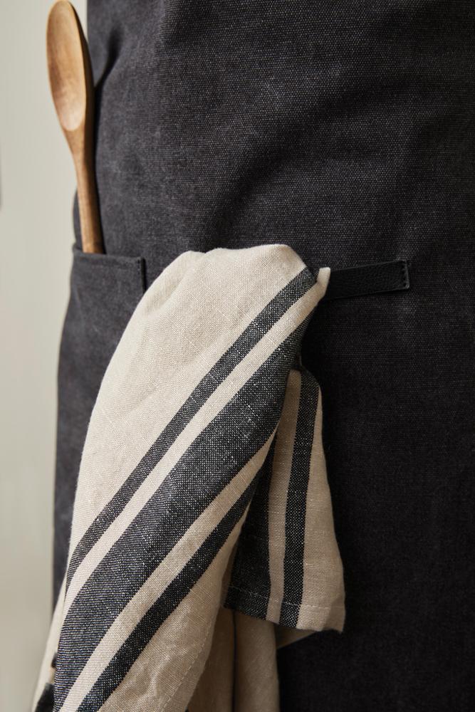 Dit stijlvolle schort combineert praktisch design met comfort: een handige voorzak, lus voor keukengerei of theedoeken, en een zachte, verstelbare nekband. Je hebt alles bij de hand tijdens het koken, zonder in te boeten op elegantie.