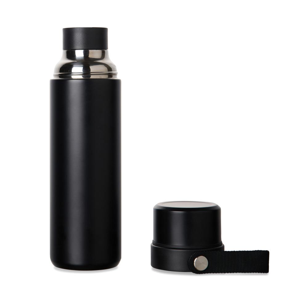 Het deksel splitst in twee bekers, superhandig om samen te proeven tijdens meetings of uitjes. De draaglus zorgt voor makkelijk transport, en je wast het eenvoudig met de hand af. Met RCS-certificering en 24% gerecycled staal benadruk je duurzaamheid, wat jouw merk versterkt bij marketingacties.