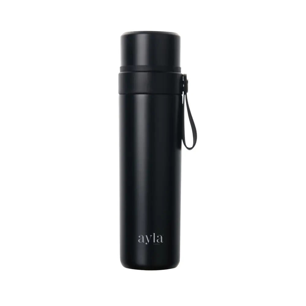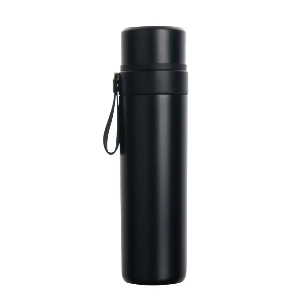 De thermosfles combineert een strak, modern design met slimme kenmerken die perfect passen bij actieve professionals. Het deksel splitst zich in twee handige bekers, ideaal voor het delen van dranken met collega's of relaties op evenementen. Een geïntegreerde draaglus zorgt voor eenvoudig transport, zodat u de fles moeiteloos meeneemt naar vergaderingen of buitenactiviteiten.