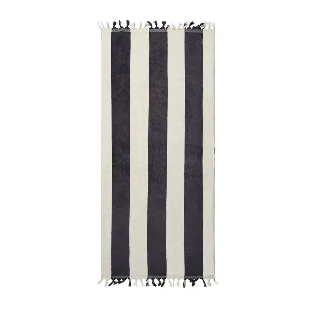 Ontdek de VINGA Valmer strandhanddoek, een luxe katoenen strandlaken met kwastjes aan de korte zijden, ideaal voor ontspannen dagen aan het strand of zwembad. Gemaakt van hoogwaardig katoen met een dikte van 450 g/m², biedt deze handdoek superieure absorptie en zachtheid voor optimaal comfort. De afmeting van 80 x 180 cm zorgt voor royale dekking, terwijl het OEKO-TEX® STANDARD 100-certificaat garant staat voor huidvriendelijkheid en milieubewuste productie.