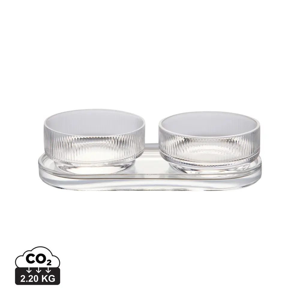 De set omvat twee compacte schaaltjes en een ruime serveerschaal, die u flexibel kunt combineren of apart inzetten. Gemaakt van hoogwaardig sodalimeglas, biedt het een robuuste en transparante look die de kleuren van uw hapjes optimaal accentueert. Met een inhoud van 250 ml per schaaltje is het ideaal voor individuele porties. Bovendien is de set vaatwasmachinebestendig, wat zorgt voor eenvoudig onderhoud en hergebruik tijdens drukke events. U bespaart tijd en inspanning, zodat u zich kunt richten op uw gasten.