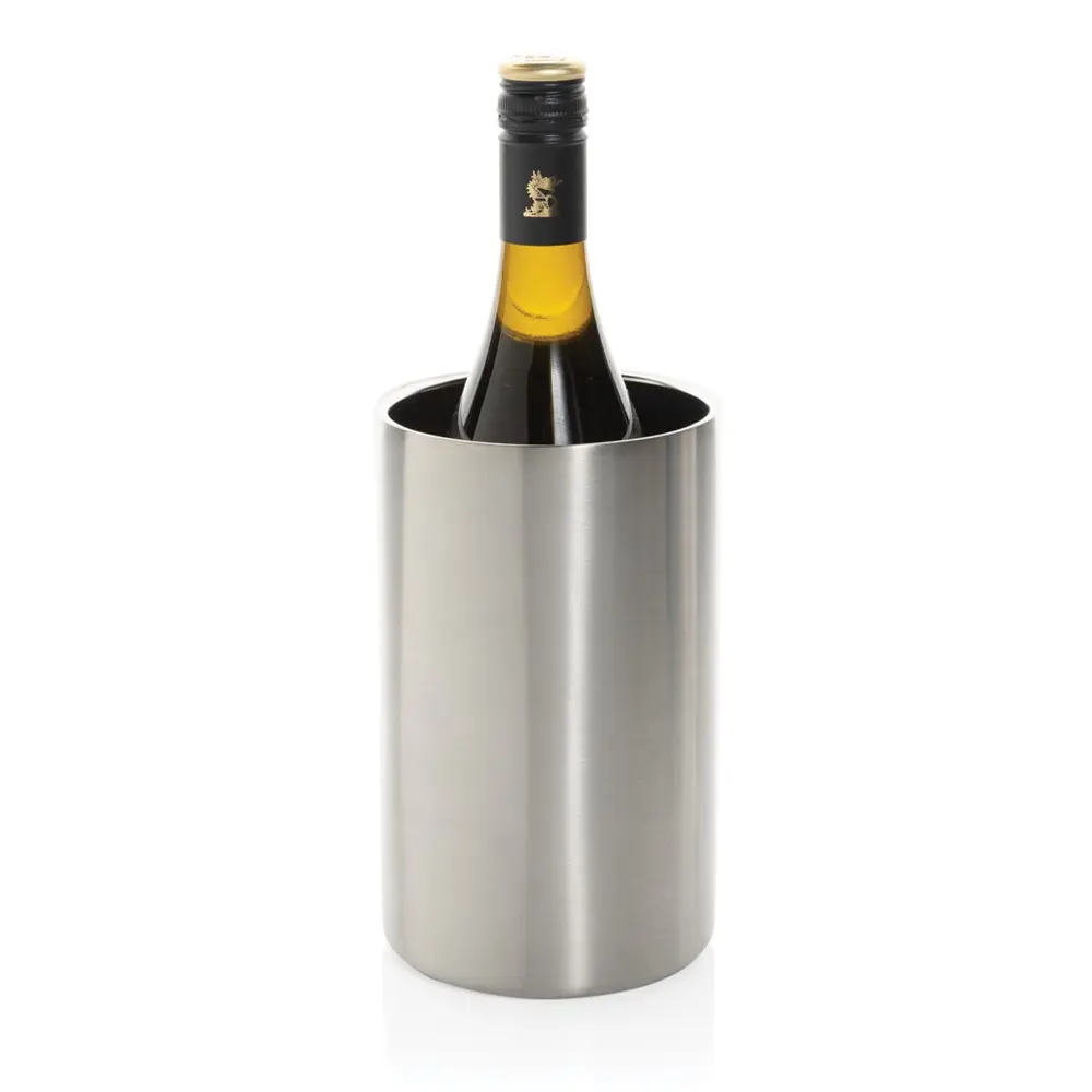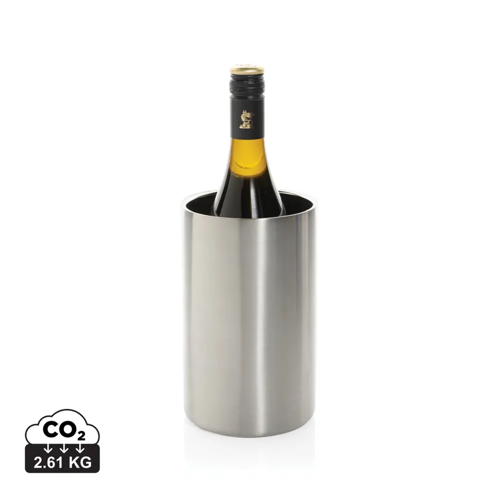 Ontdek de elegante wijnkoeler, vervaardigd uit gerecycled roestvrij staal, die uw evenementen een verfijnde touch geeft. Dit duurzame accessoire koelt uw wijnen perfect af, terwijl het een opvallend middelpunt vormt tijdens borrels of diners. Ideaal voor marketingprofessionals en eventorganisatoren die op zoek zijn naar gepersonaliseerde relatiegeschenken met logobedrukking.