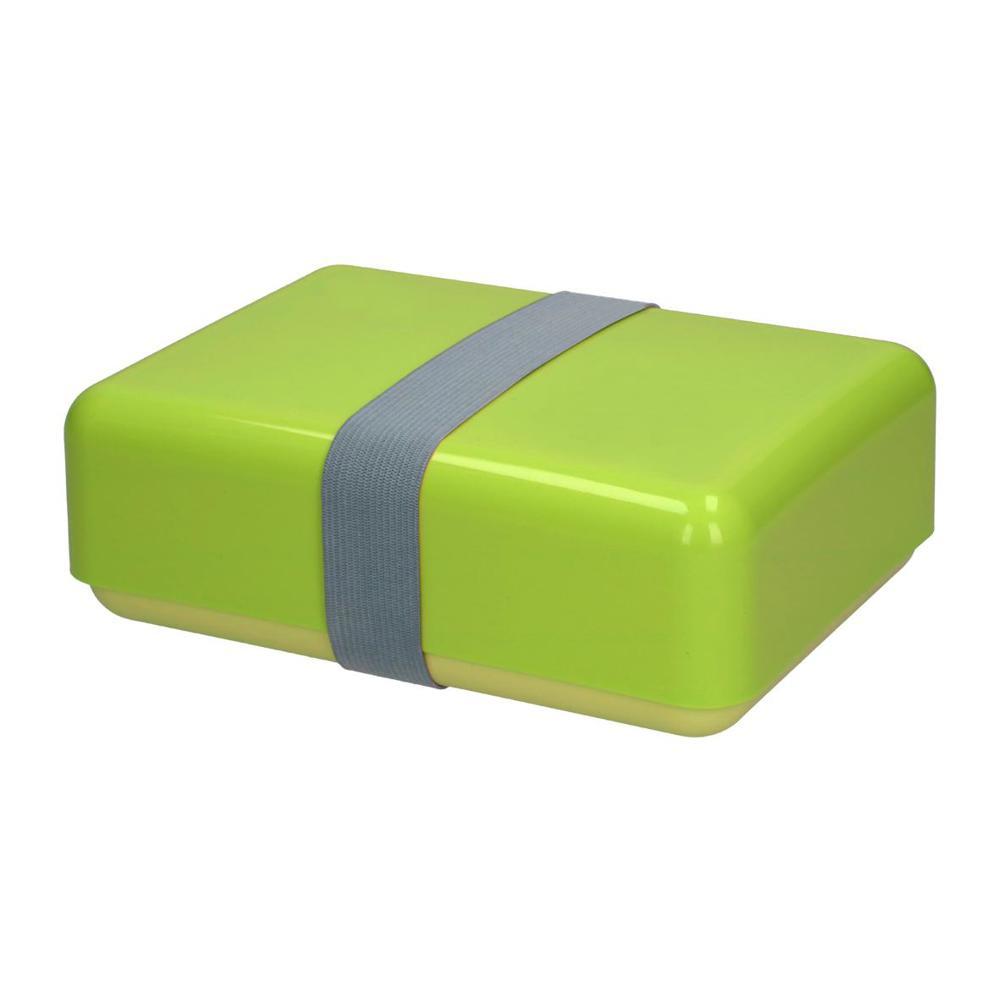 Bijna een beetje retro, maar helemaal trendy. Geweldige, ruime lunchbox bestaande uit twee vierkante bakjes die met een elastiek (65% polyester, 35% latex) aan elkaar worden gehouden. Het deksel kan volledig over het onderste deel worden geschoven, maar is dankzij de uitsparingen aan de zijkant gemakkelijk te verwijderen. IMould-afwerking mogelijk.