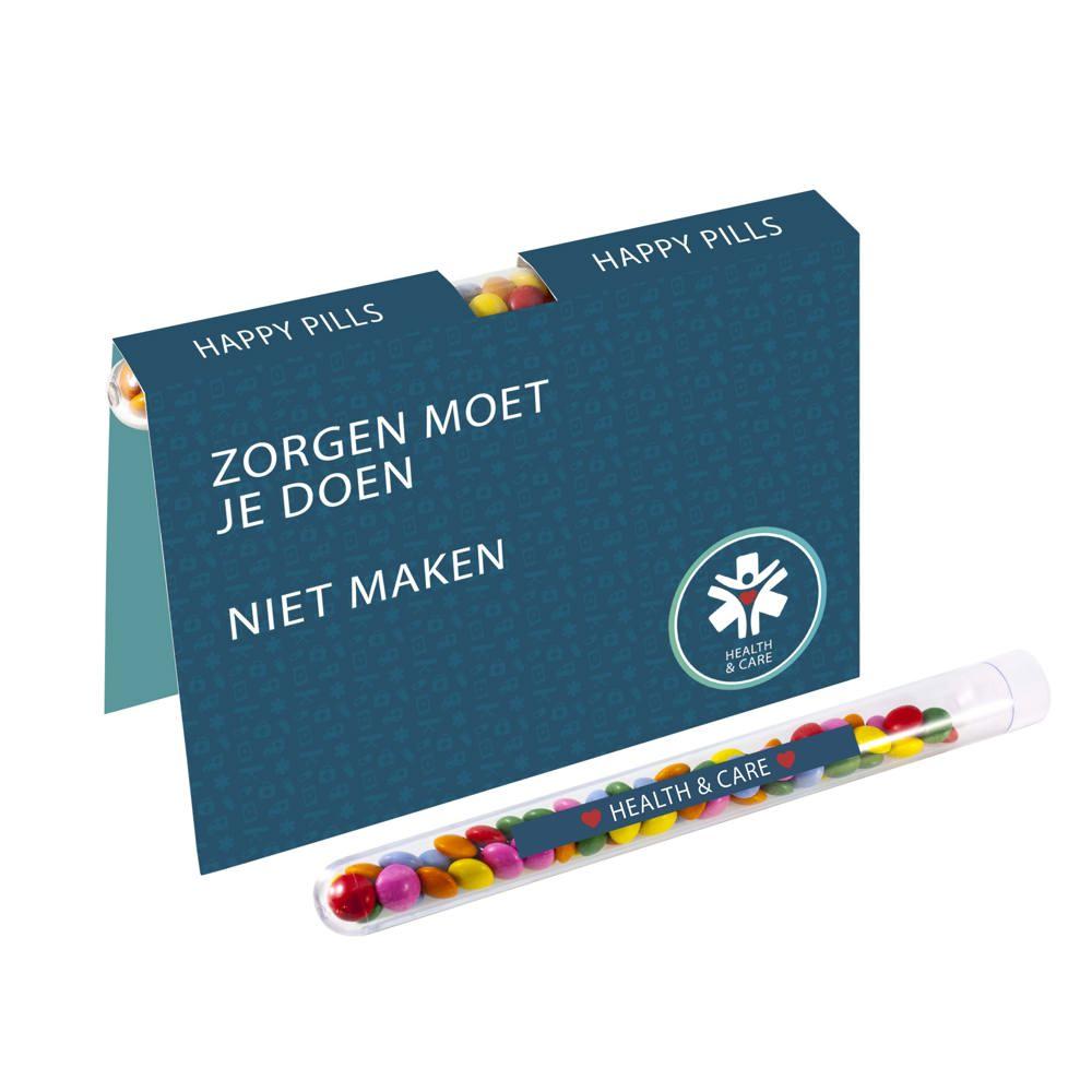 Je scoort met deze vouwkaart en gevuld reageerbuisje als uniek relatiegeschenk. De full colour bedrukte kaart vouwt mooi open en bevat een reageerbuisje met circa 13 gram lekkere mini choco. Personaliseer alles met jouw logo in full colour voor maximale zichtbaarheid.