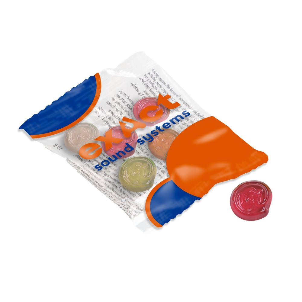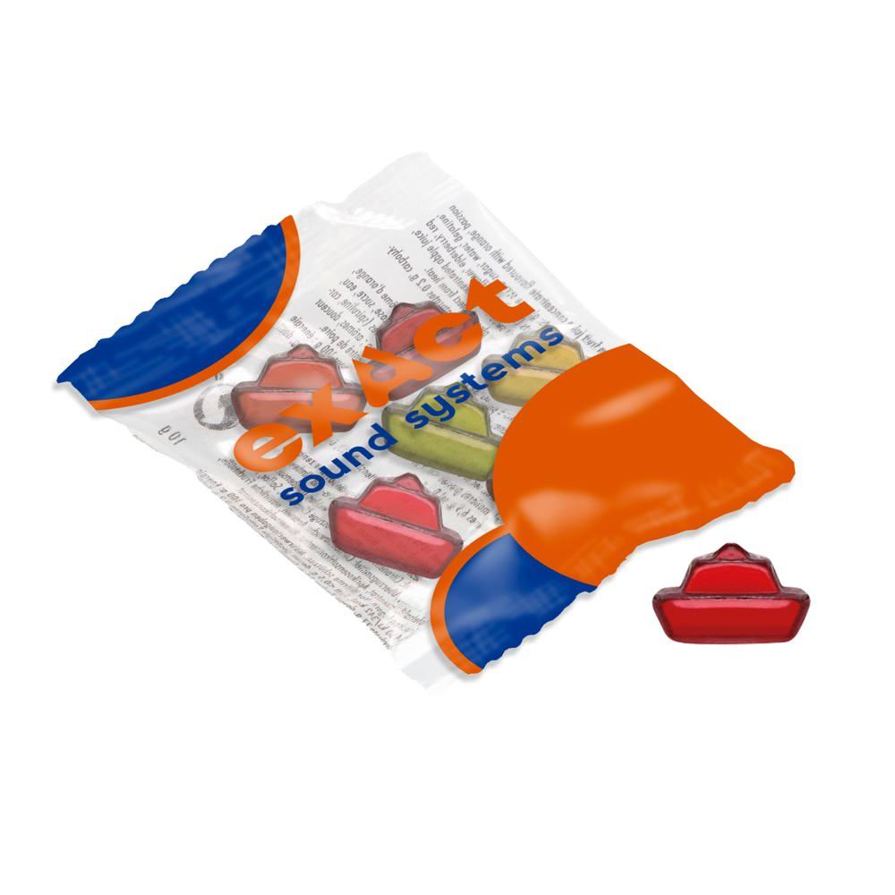 Vruchtengummies classic car in witte folie, ca. 10 gram vruchtengummies in assorti kleuren en smaken