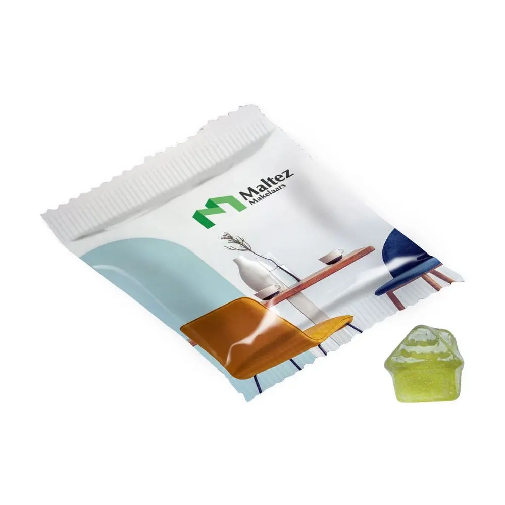 Ontdek onze vruchtengummies in standaardvormen, zoals de klassieke auto, verpakt in folie met een inhoud van circa 10 gram. Deze smakelijke traktaties in diverse smaken vormen een ideaal gepersonaliseerd relatiegeschenk voor uw marketingacties of events. Met logobedrukking op de verpakking versterkt u uw merkherkenning bij klanten en relaties. De compacte grootte maakt ze eenvoudig uit te delen, terwijl de frisse vruchtsmaken voor een positieve indruk zorgen. Perfect voor bedrijven die op zoek zijn naar betaalbare, effectieve promotieartikelen in bulk. Bestel nu en laat uw logo opvallen met deze veelzijdige snoepjes.