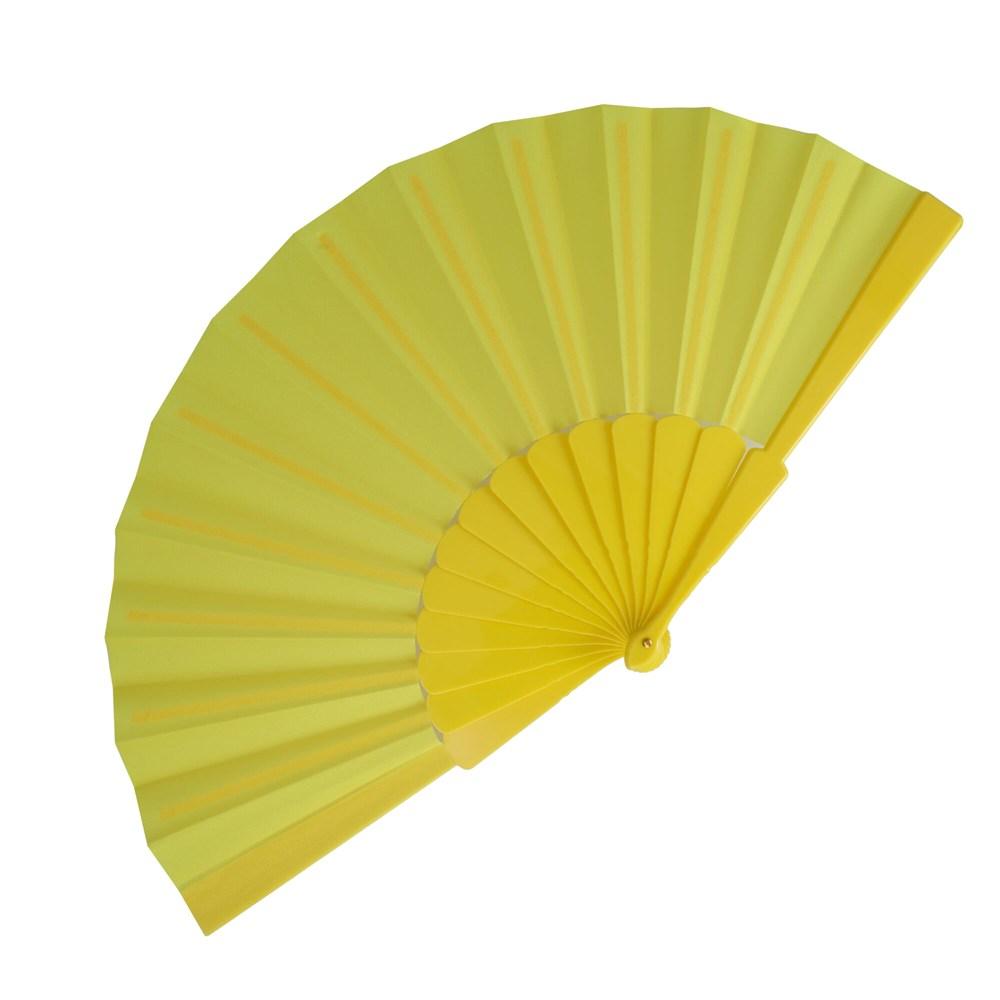 Waaier van kunststof en polyester. Verkrijgbaar in verschillende felle kleuren, ideaal voor buiten evenementen en hete zomerdagen.