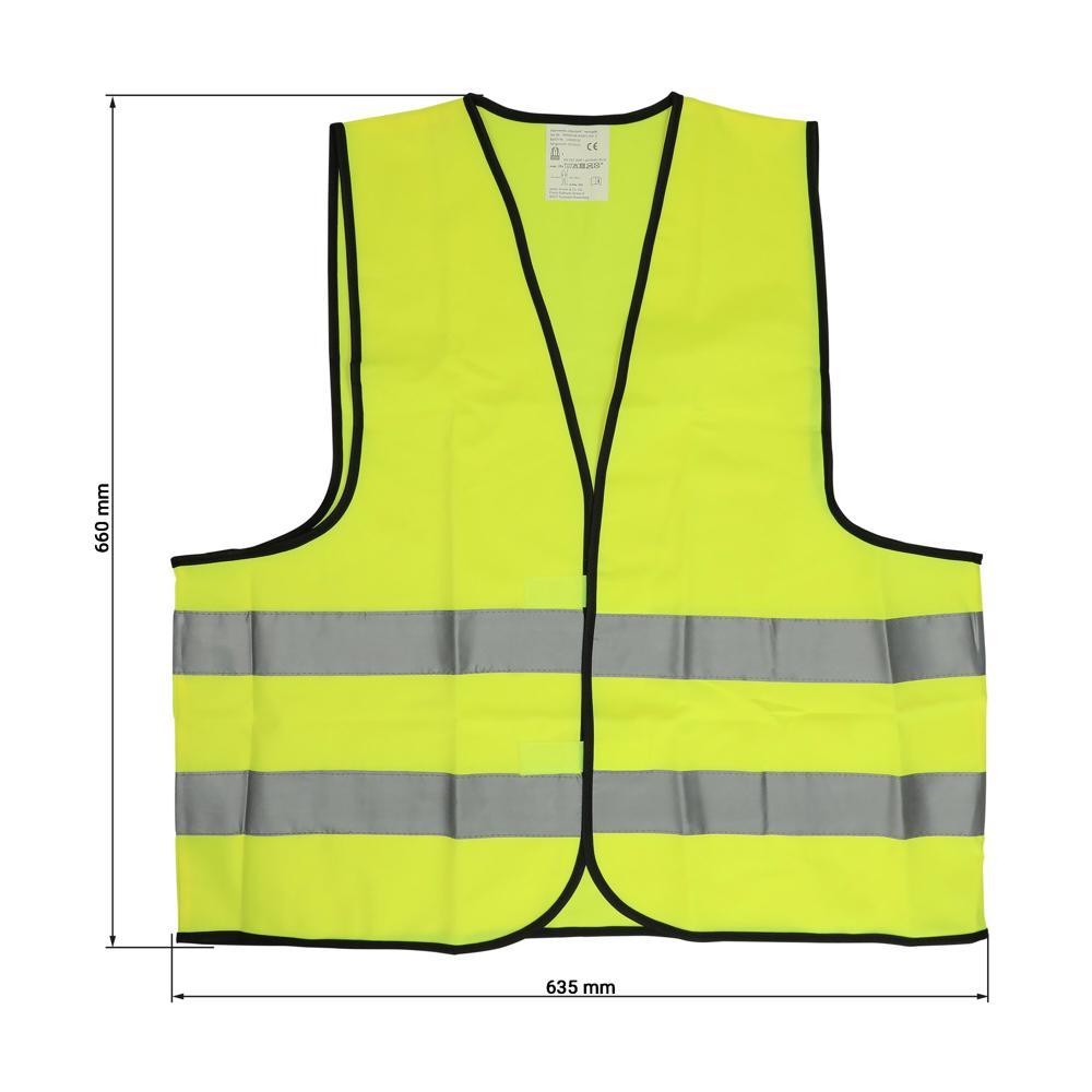 Je zorgt met deze praktische set van 5 veiligheidsvesten voor maximale veiligheid tijdens events of op de weg. Elke vest heeft sterk reflecterende strepen, voldoet aan EU-verordening 2016/425 klasse II en norm EN ISO 20471:2013+A1:2016, en past perfect dankzij één universele XXL-maat. Verpakt in een handig nylon etui, ideaal om uit te delen aan je klanten of relaties.