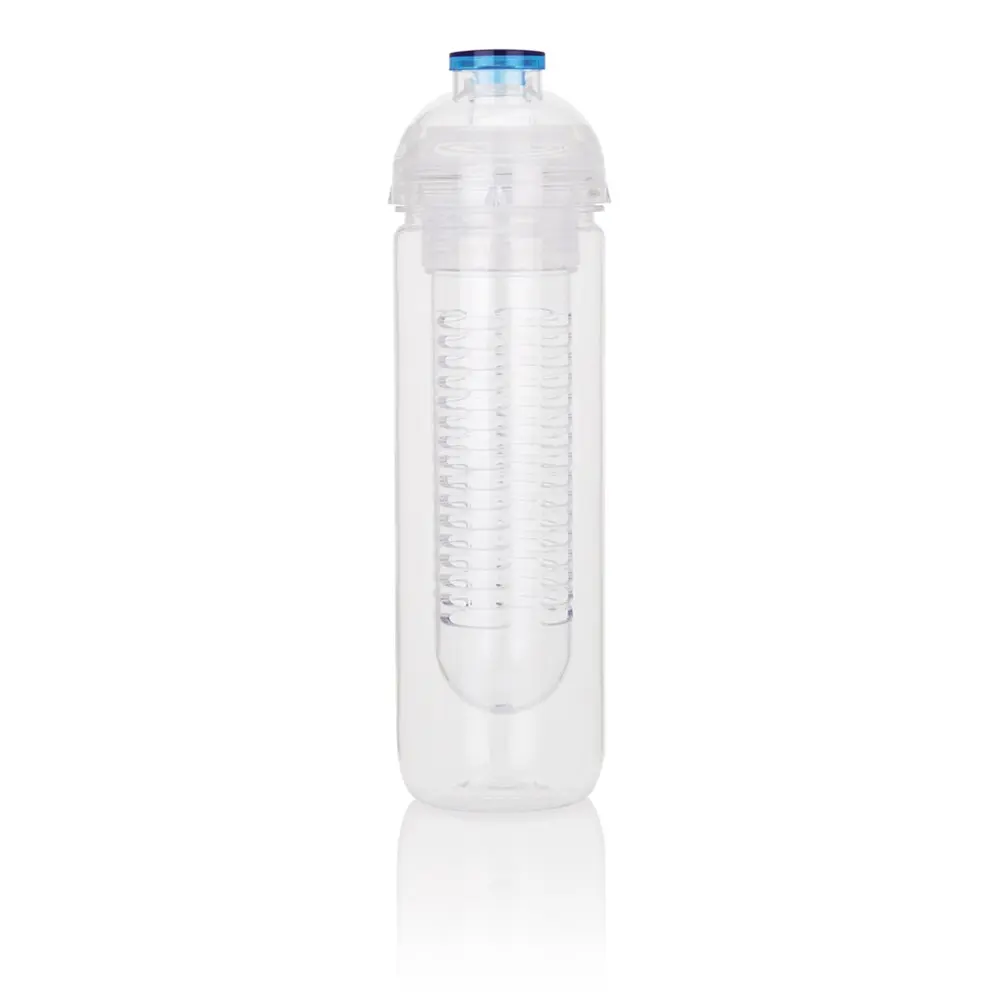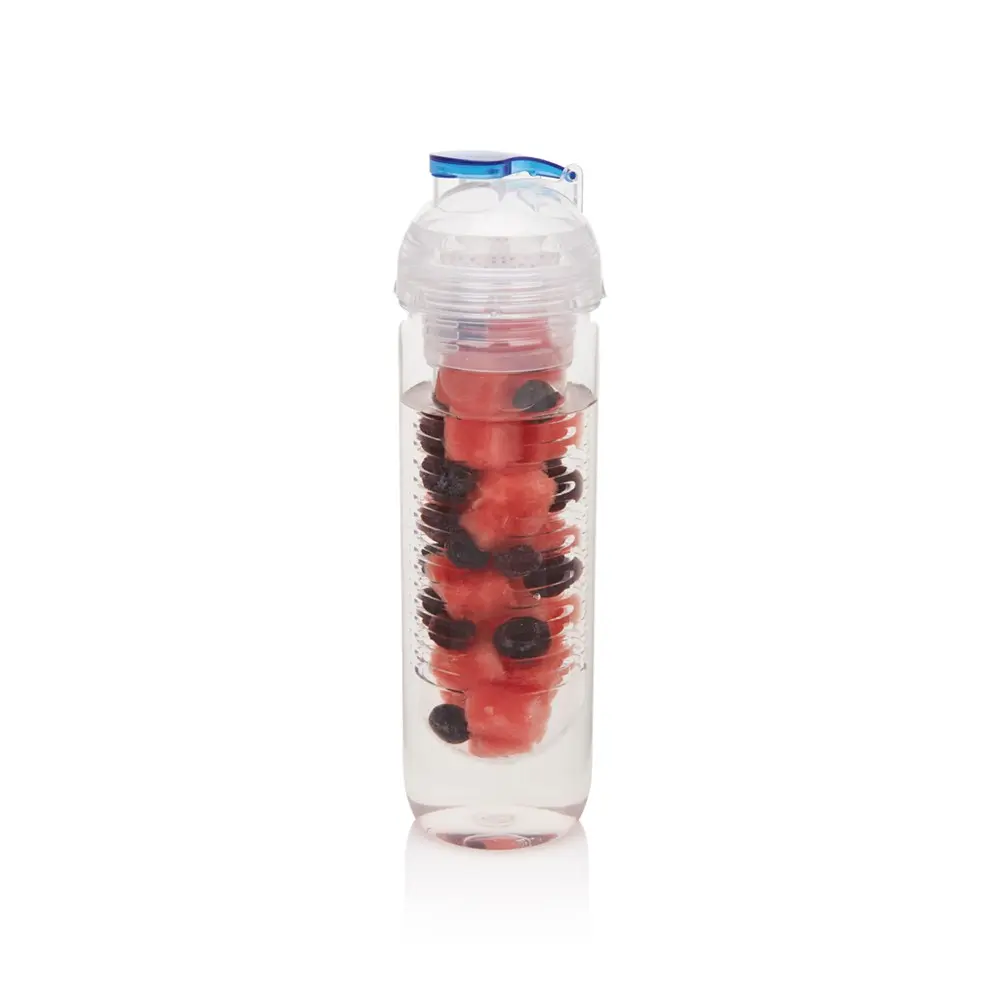 Ontdek onze 500 ml tritan fles met geïntegreerd infuser compartiment, ideaal als relatiegeschenk voor uw marketingcampagnes of events. Deze fles biedt u de mogelijkheid om water te verrijken met vitaminen en smaak door vers fruit toe te voegen aan het compartiment. Bovendien fungeert het als koelelement wanneer u ijsklontjes gebruikt, wat zorgt voor een verfrissende ervaring gedurende de dag.