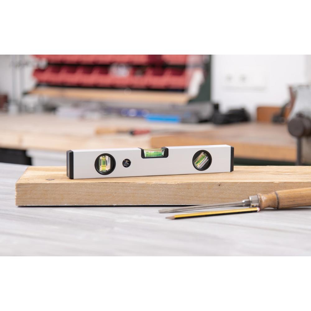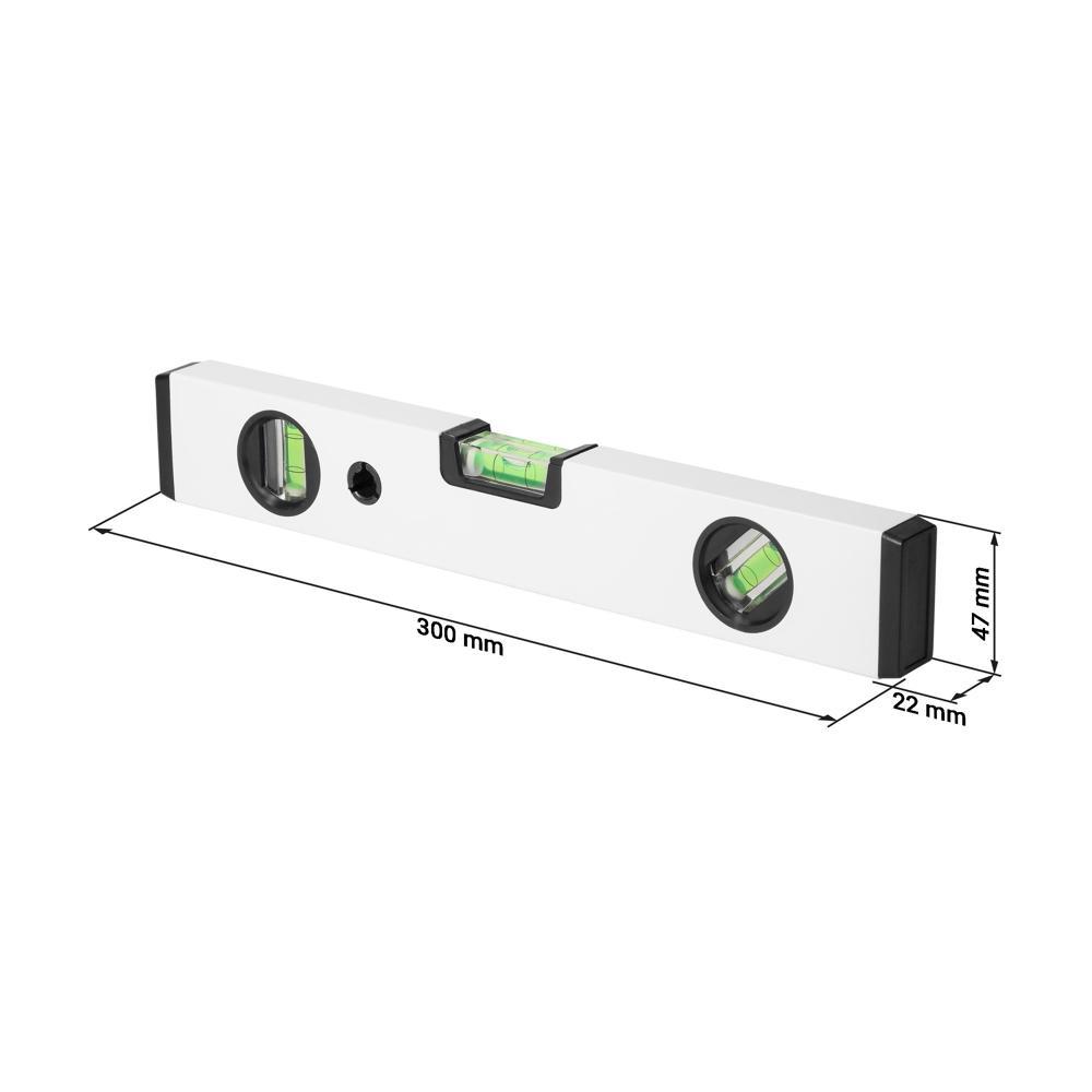 Ontdek deze robuuste aluminium waterpas van 30 cm, perfect als gepersonaliseerd relatiegeschenk. Je meet nauwkeurig horizontaal, verticaal en op 45 graden dankzij de drie betrouwbare libellen. De kunststof eindkappen beschermen het profiel tegen stoten, zodat hij lang meegaat.